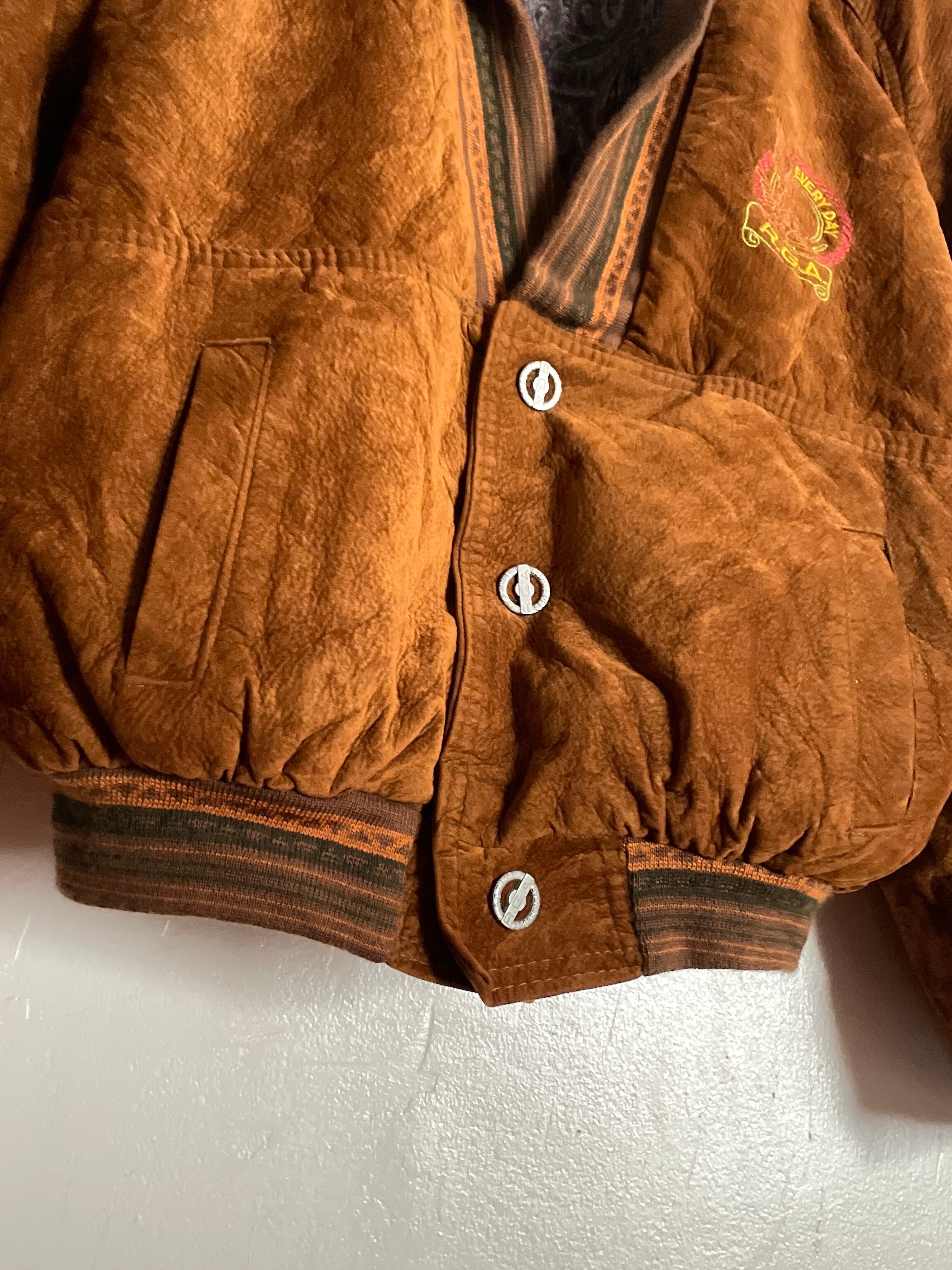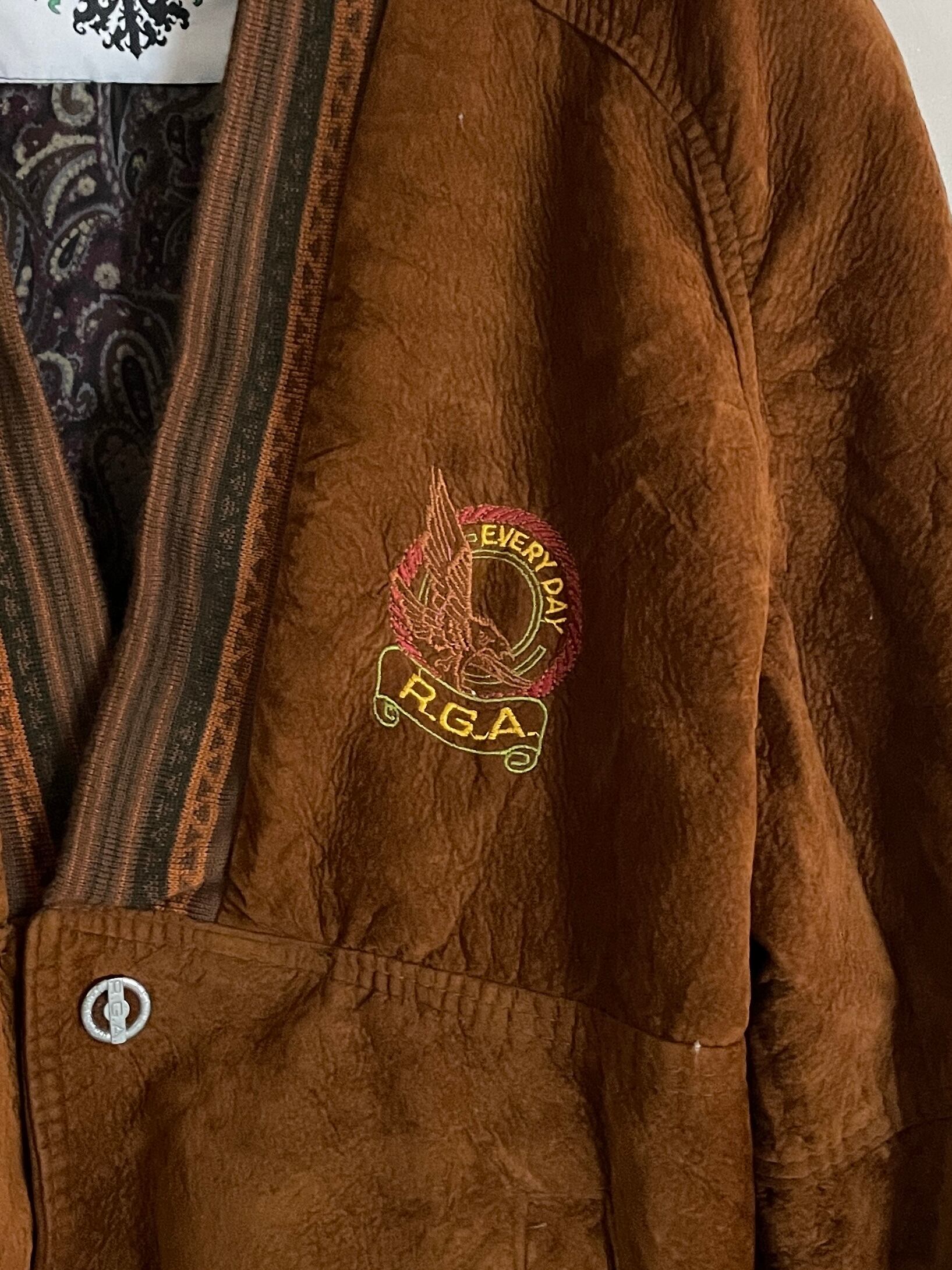 触り心地のいいフェイクスエードが使われたカーディガンジャケット。裏地付きの中綿入りで、弾力とボリューム感があります。着丈は若干短め、柄の入ったリブ切り替えもお洒落、裏地のペイズリー柄もポイントです。重さもないため、軽い着心地でしっかり暖かい、個性を出せる一着です。
