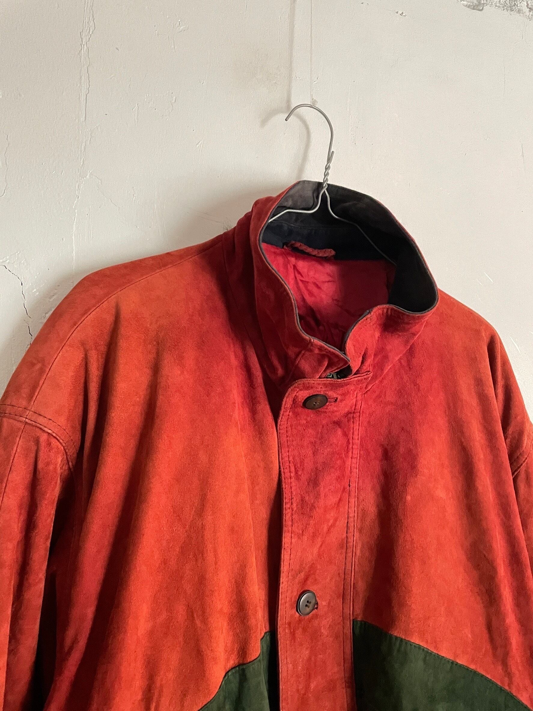 Old Red×Green High Neck Goat Leather Jacket