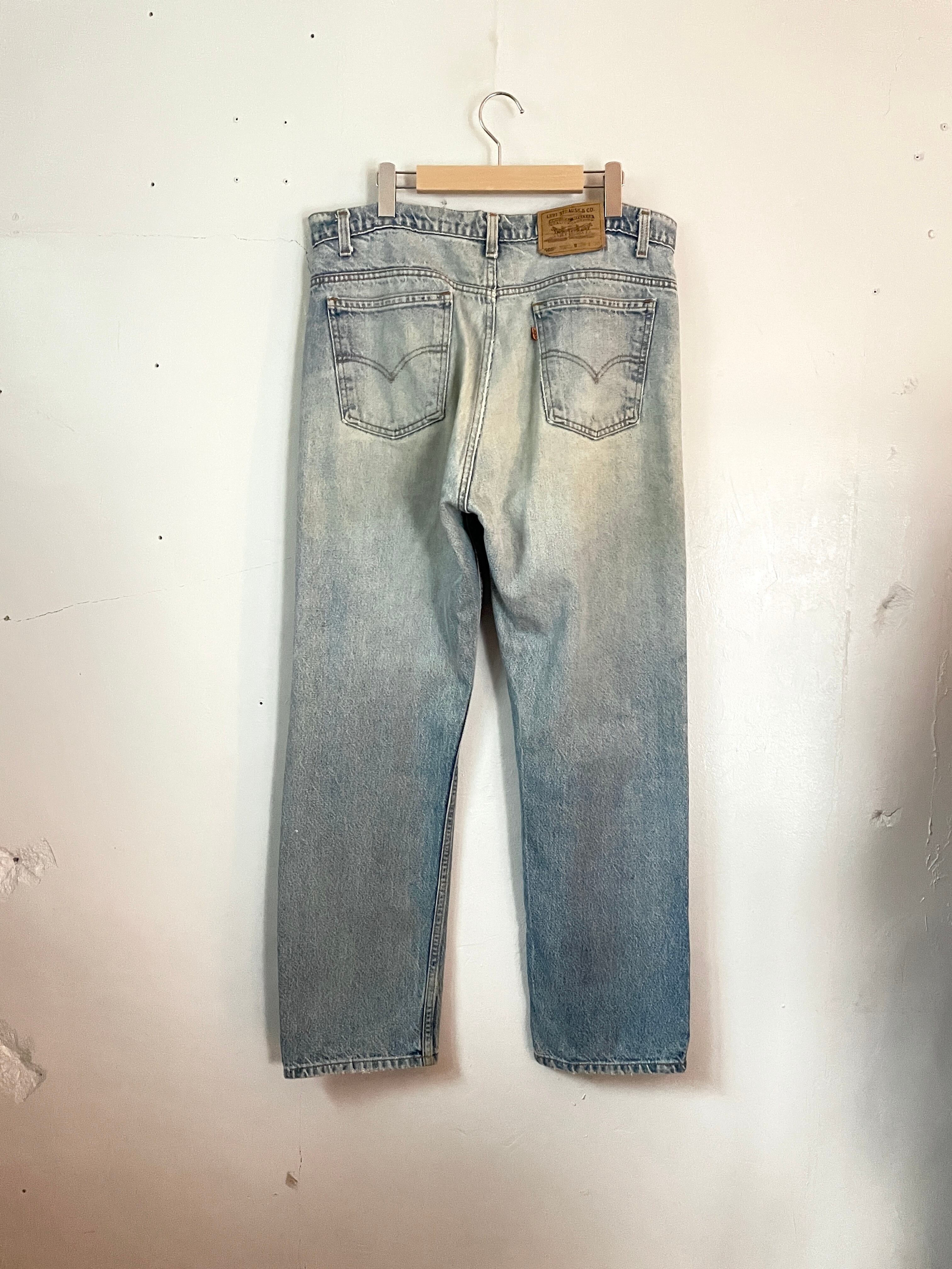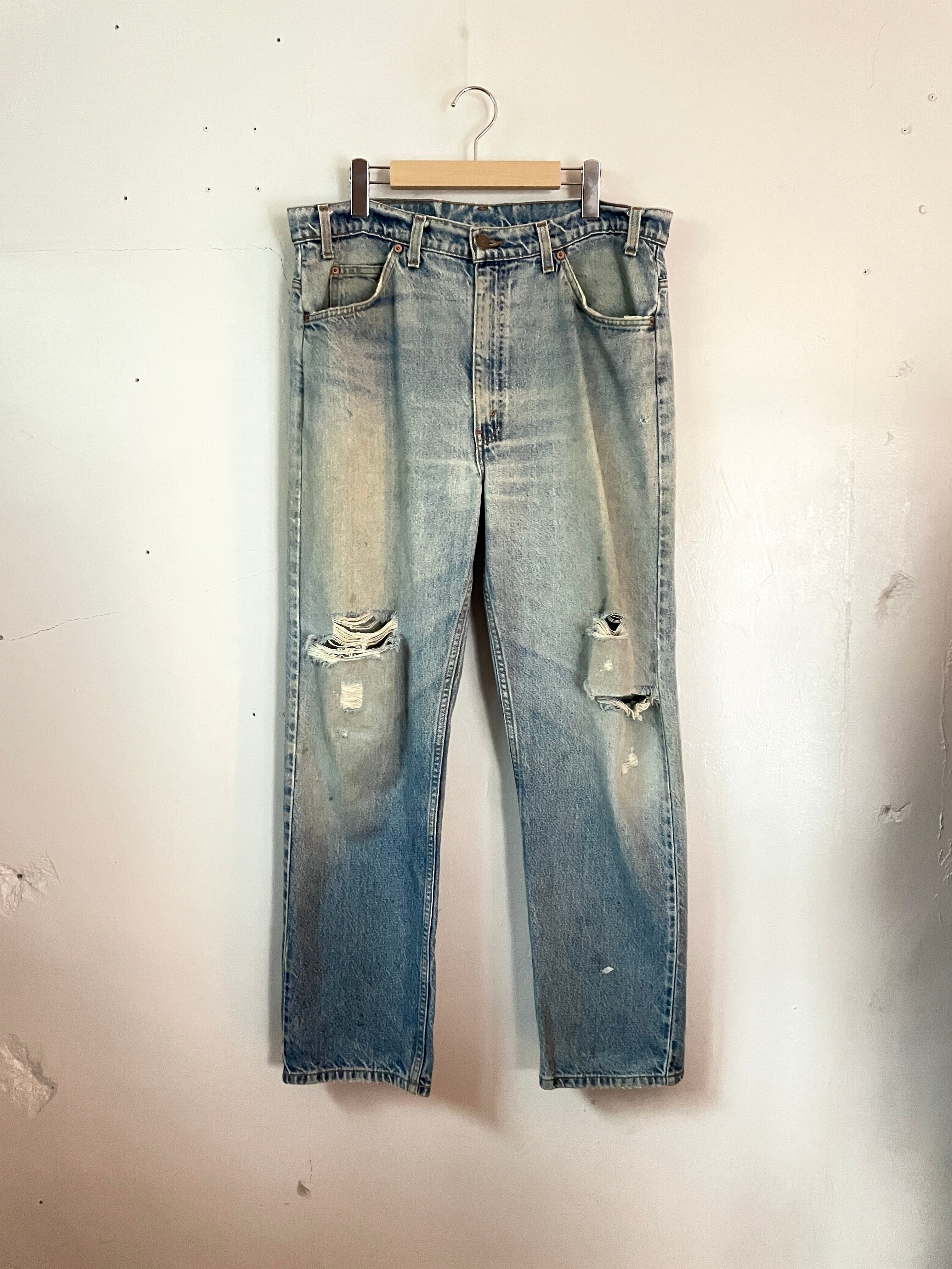膝あたりのダメージがかっこいいリーバイス505。色落ち具合もいい雰囲気です。ややゆったり目のシルエットも程よく、加工では表せない自然な着用感がヴィンテージデニムならではです。綺麗めなトップスに合わせるのも良し、ダメージ感のあるトップスでグランジテイストを表現するも良し。コーディネートにアクセントを与えてくれる一本です。