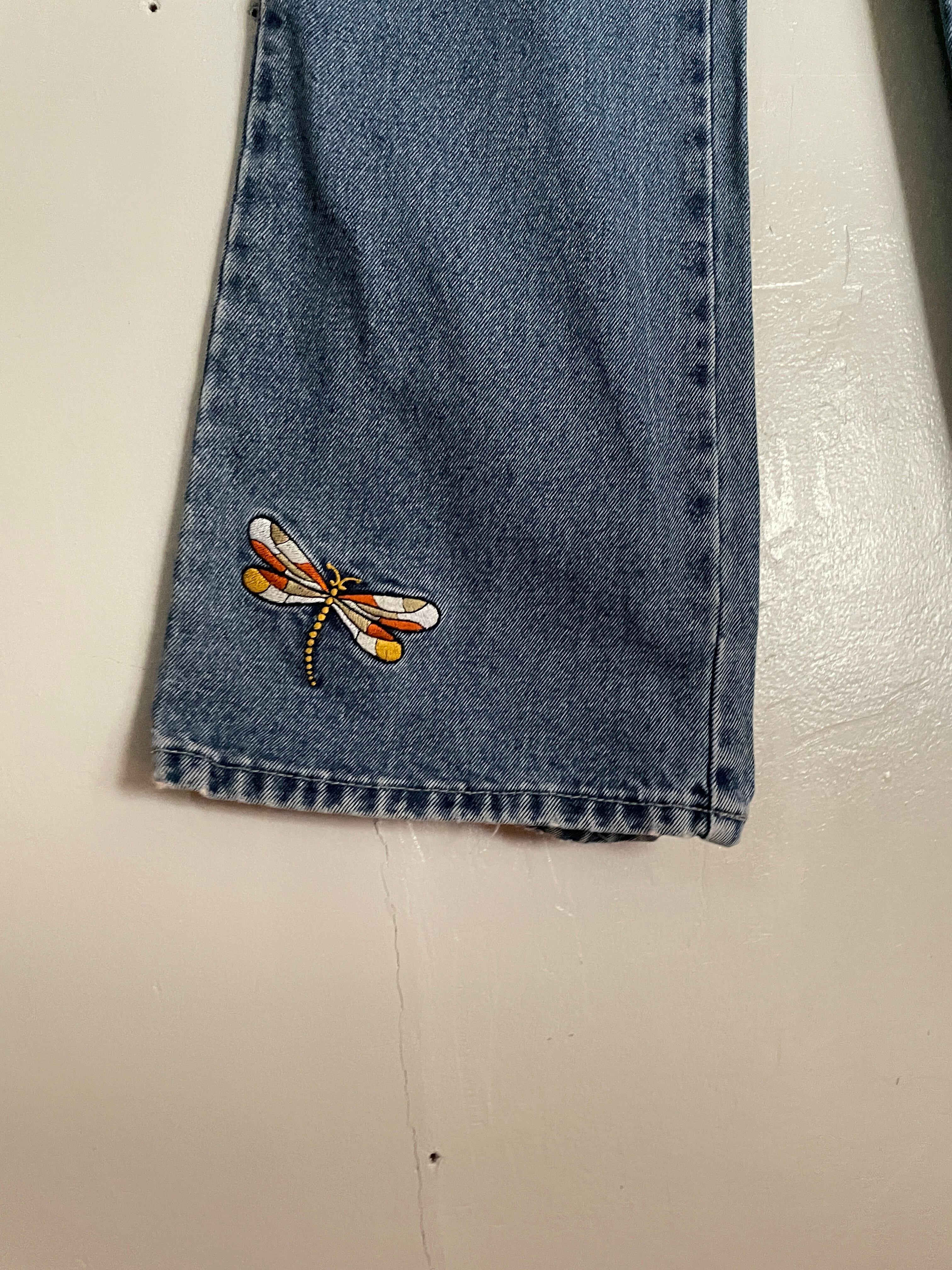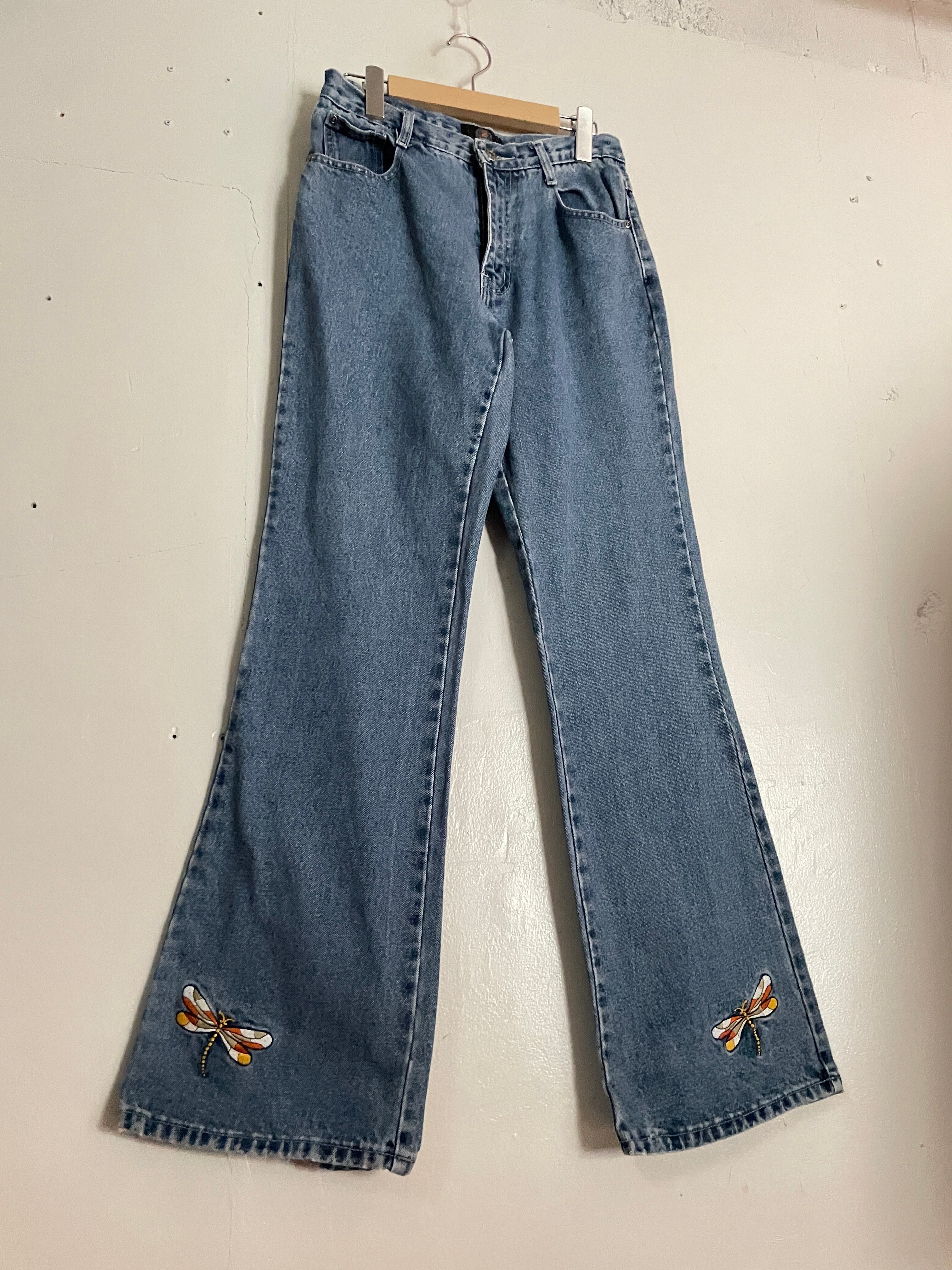 Old Rue 21 Dragonfly Embroidery Design Flare Denim Pants