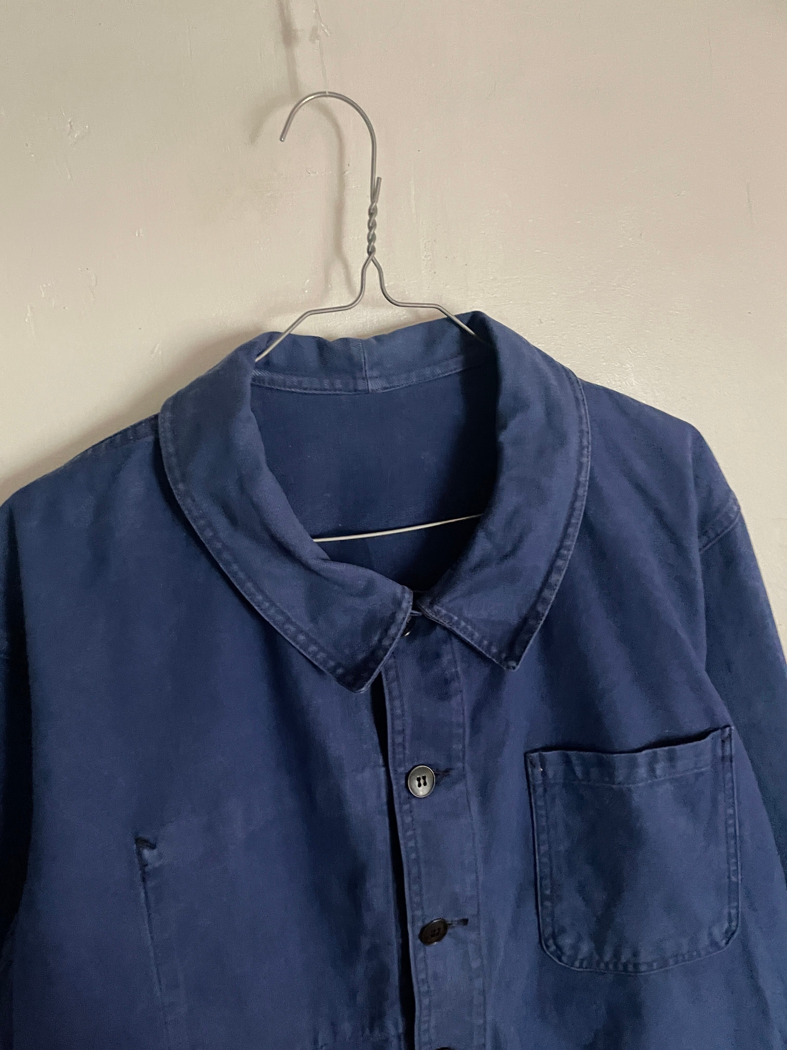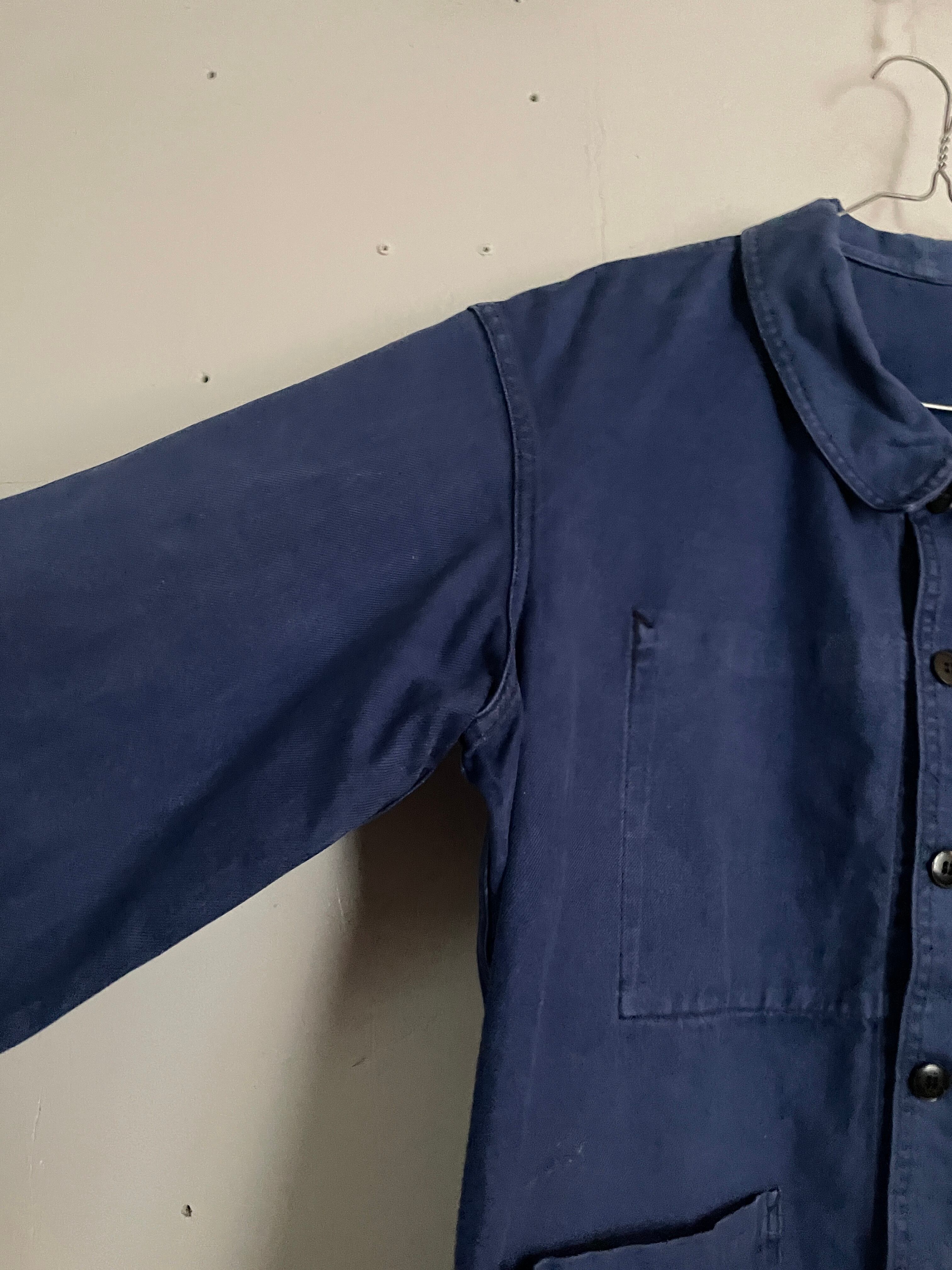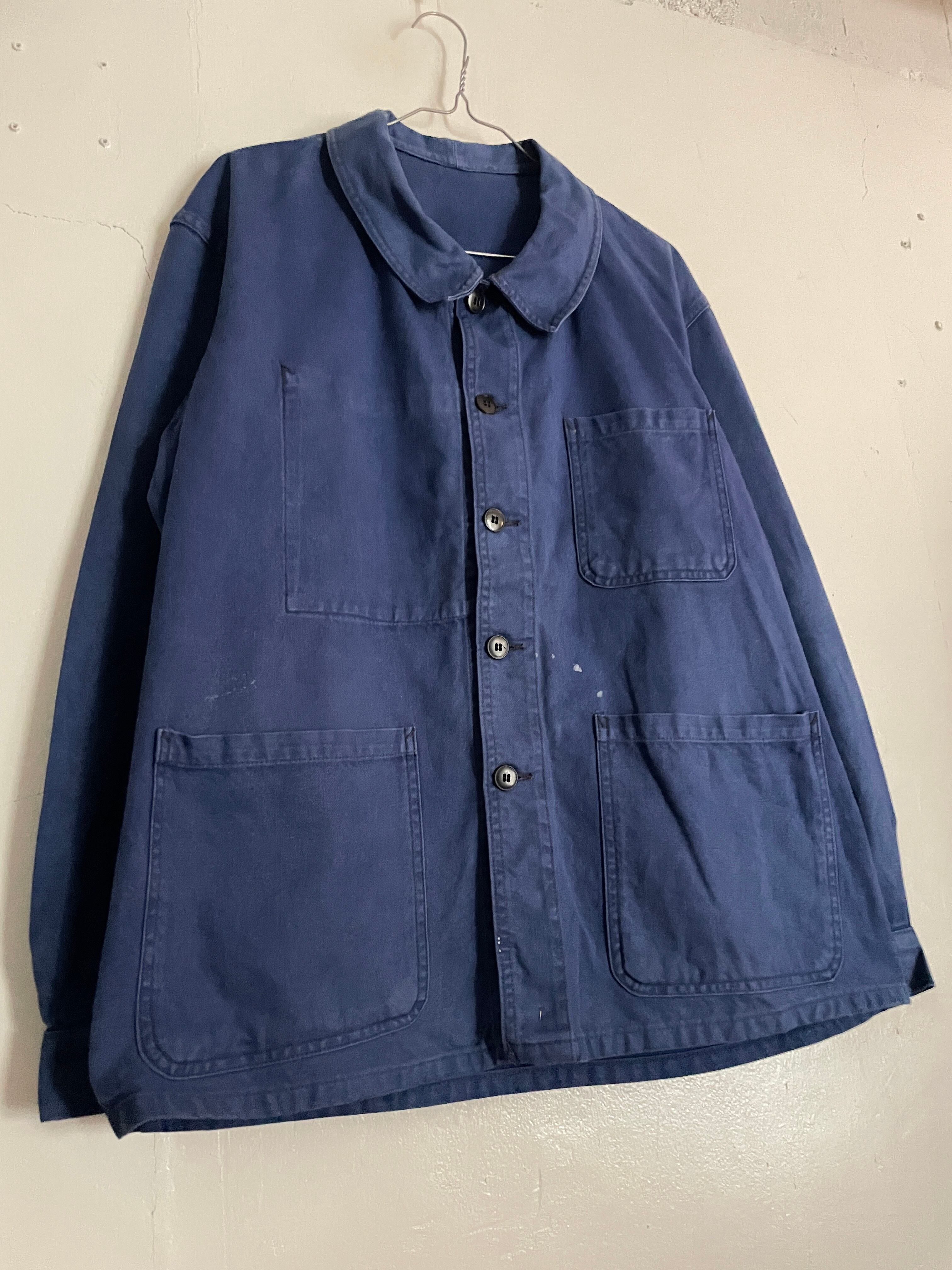 渋さの感じられる色味のユーロワークジャケットです。今っぽい身幅と着丈のバランス。3つのポケットが特徴的で、右胸の内ポケットもあたりがでていて良い雰囲気です。ヴィンテージ感の感じられるアイテムです。