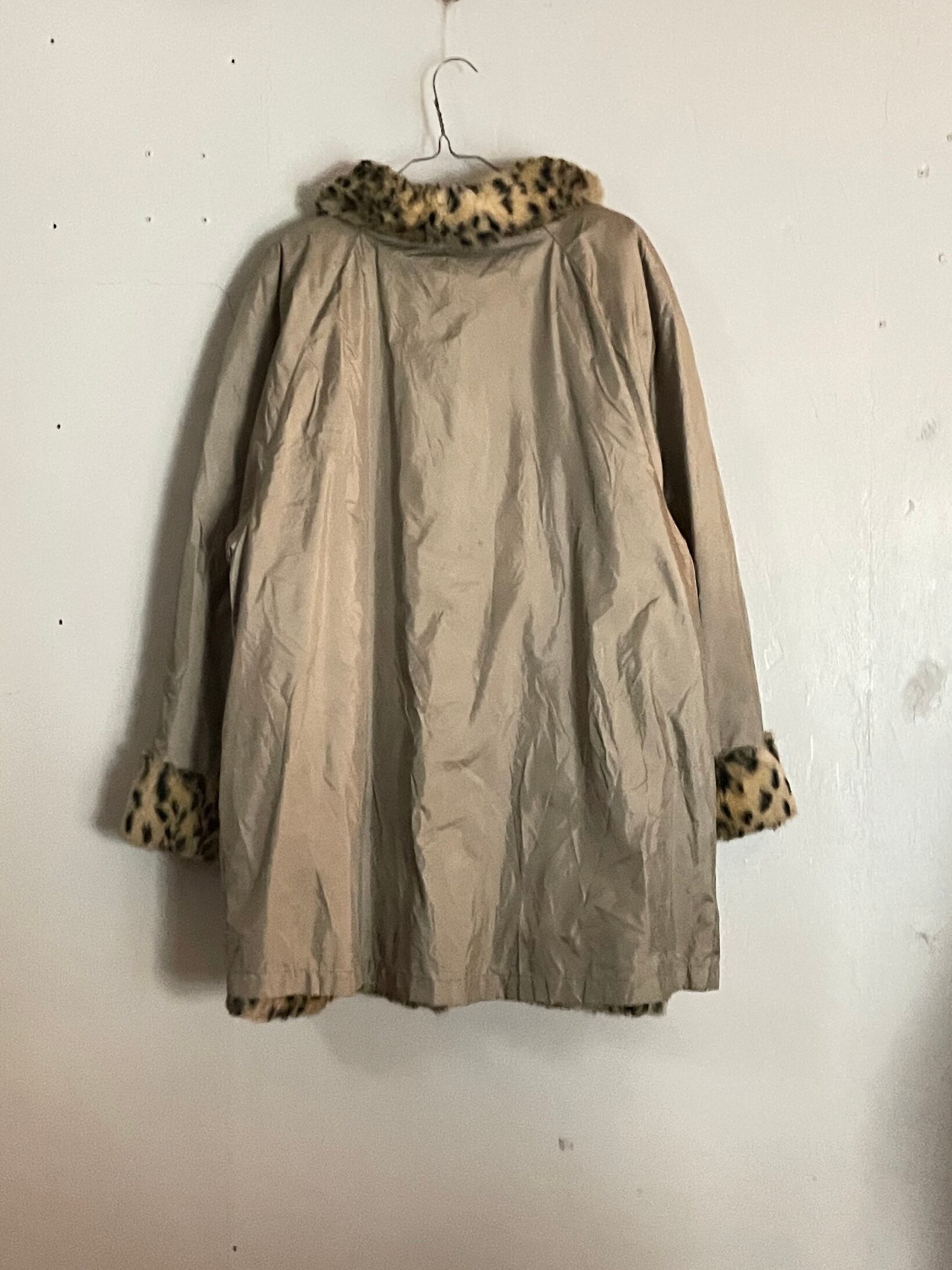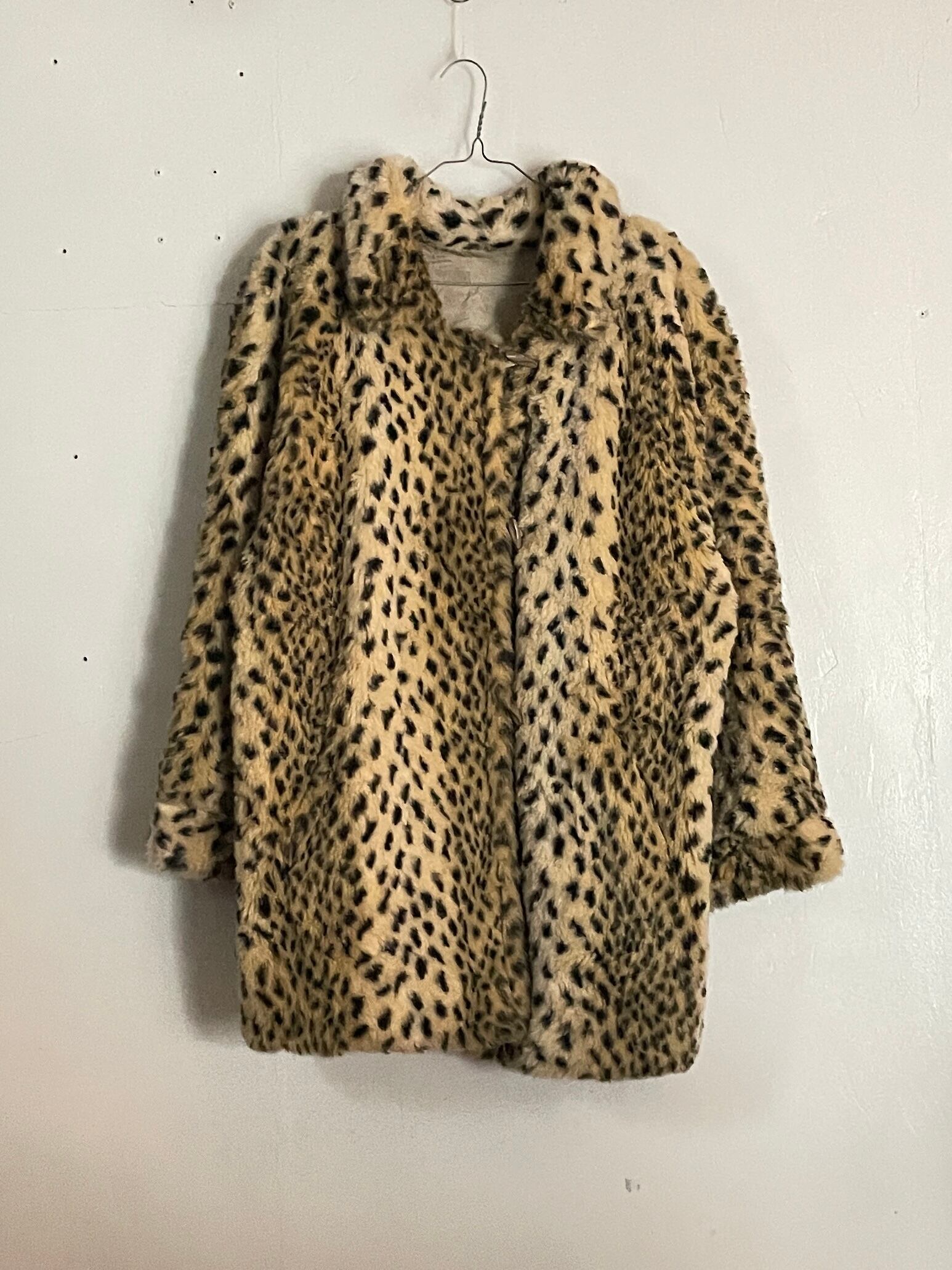 ド派手なレオパード柄で、雰囲気抜群のファージャケット。リバーシブル仕様で、裏はサラッとした素材感で、シンプルなベージュカラー。裏表で印象がガラッと違うのがグッドです。気分によって使い分けられるお得感のある1着です。間違い無くファッションのメインを張れるアイテムです。USA製なのも魅力的です。