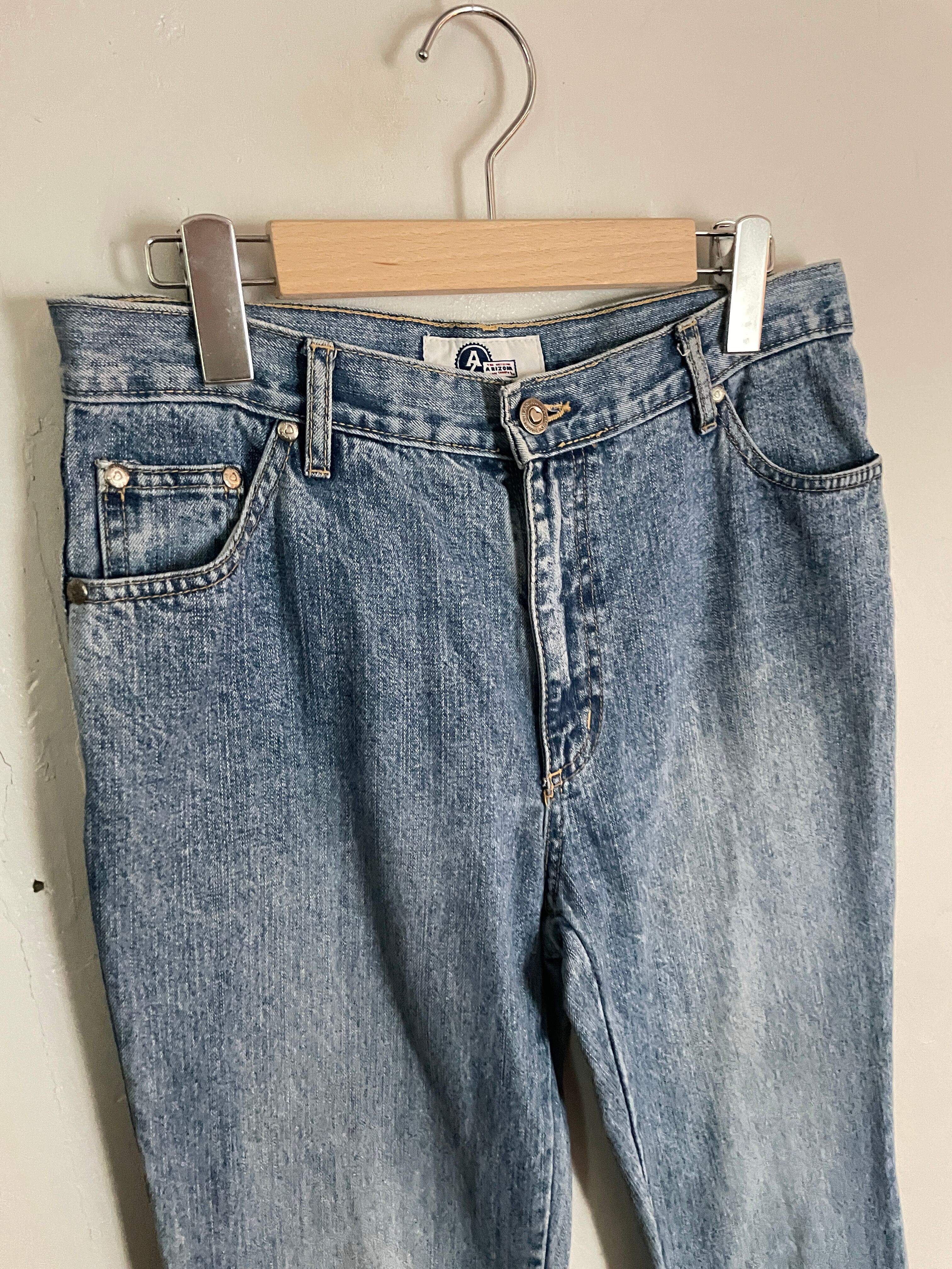 Old ARIZONA Pattern Embroidery Cut Off Flare Denim Pants