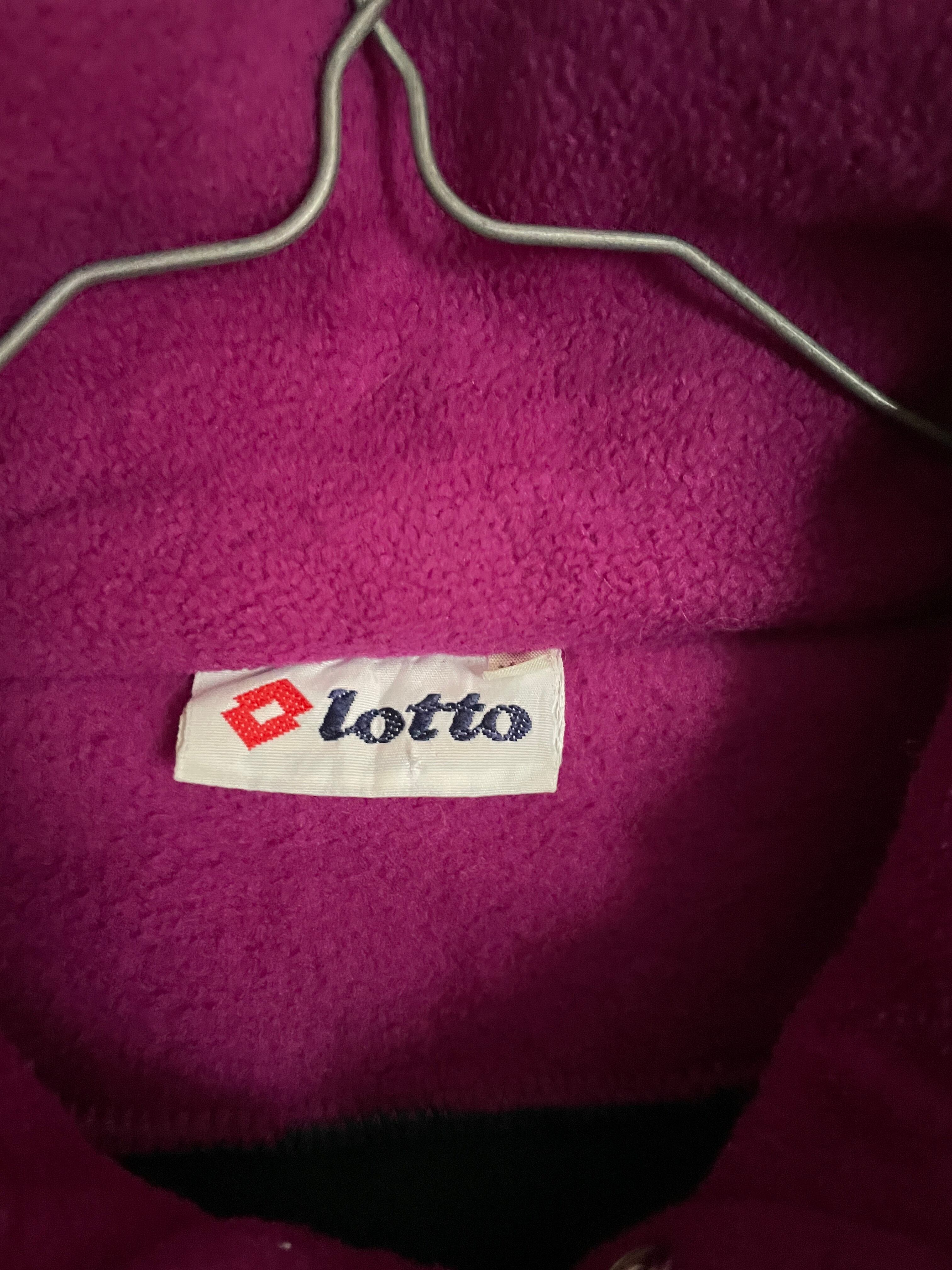 グリーンとピンクの、レイヤードしているようなダブルネックデザインがお洒落な、ロットのフリースプルオーバー。フロント部分には可愛らしい花の刺繍が施されています。ロットっぽく無いデザインが逆に良い。大き過ぎないサイズ感なので、今っぽいシルエットで着られそうです。まさに冬に活躍してくれる一着です。グリーンのジップが破損しております。