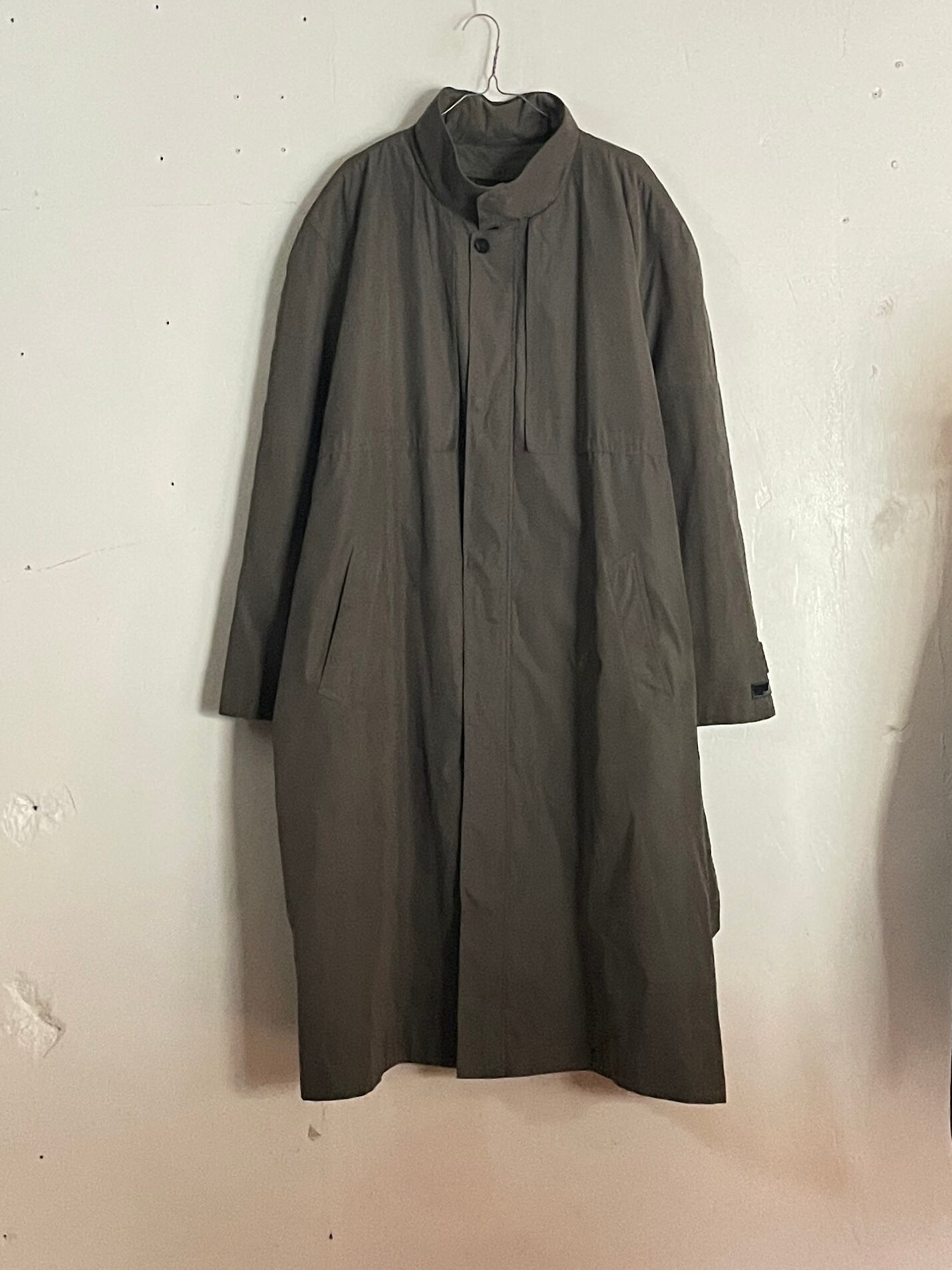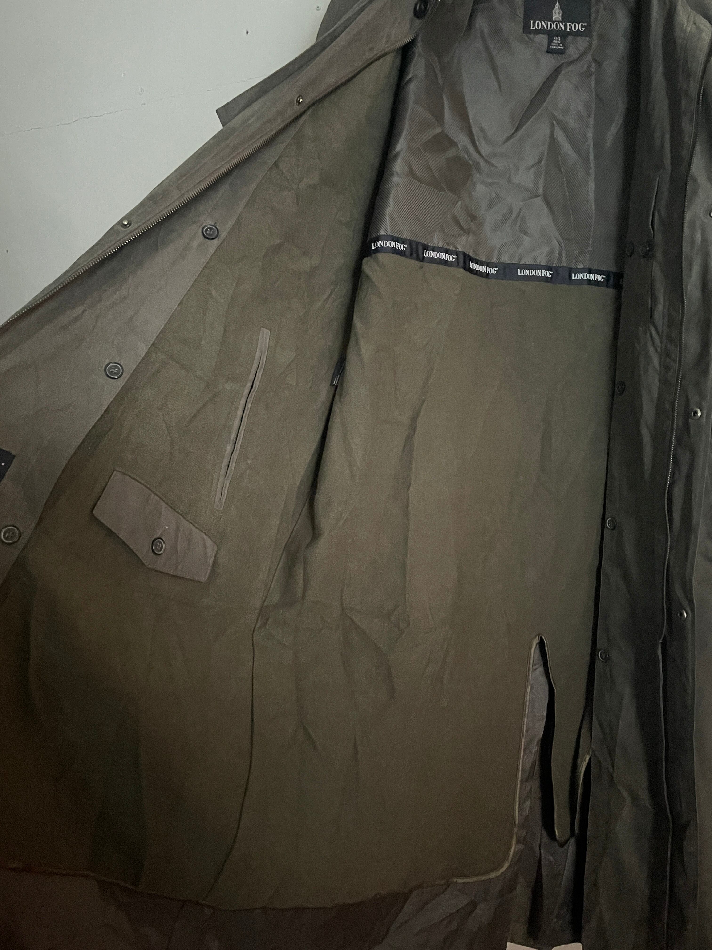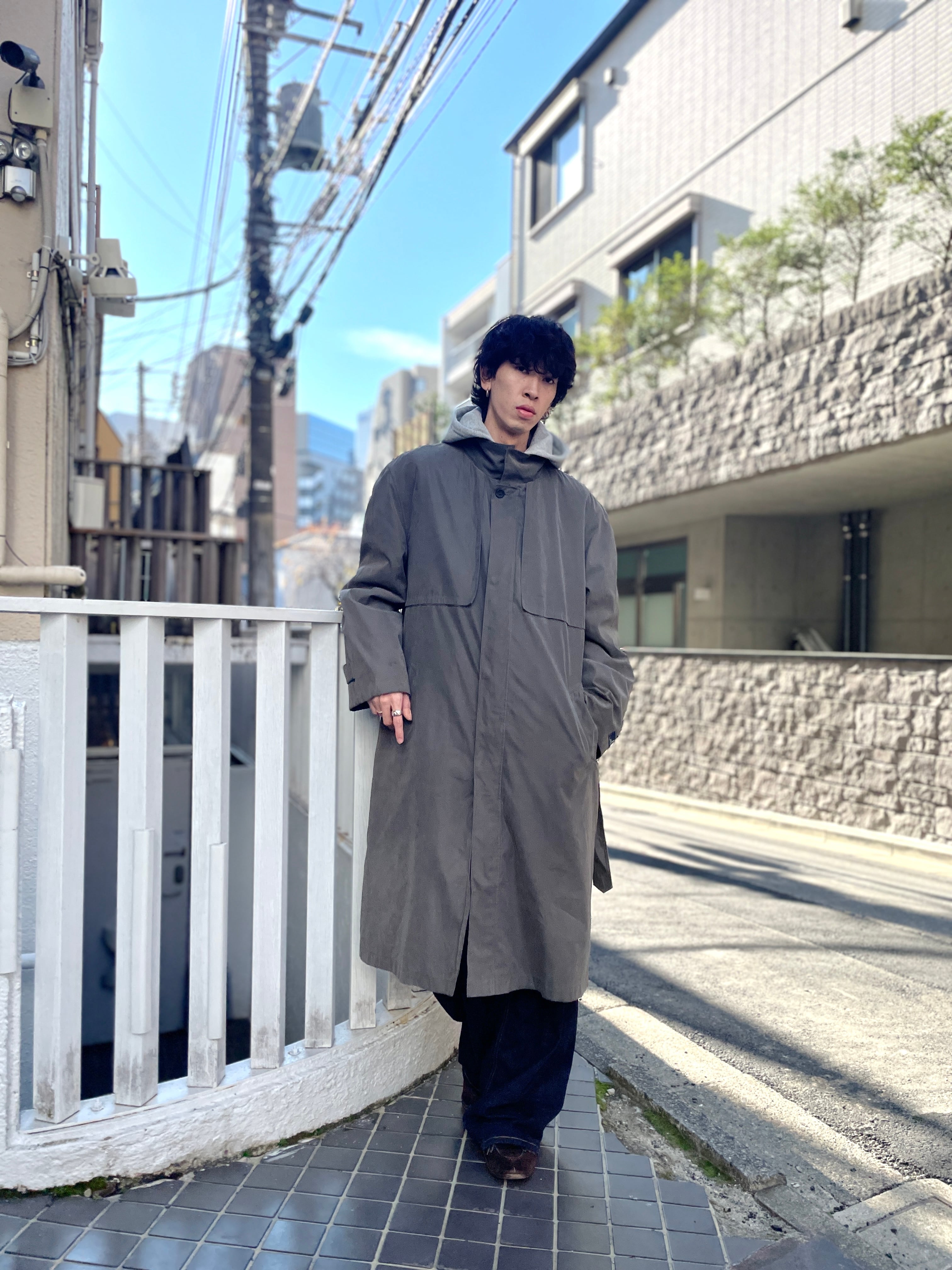 渋さのあるオリーブボディの、ロンドンフォグのヨークデザインコート。胸元のヨークデザインがいい雰囲気です。さすがロンドンフォグといった完璧なディテール。ハイネックでフード付きと機能性抜群。ライナー付きで取り外し可能なので、一年通して使える期間が多そうです。ポリとナイロン素材の上品な質感です。紐ベルト付きなので、着方によって縛って着ても、また違った雰囲気になりそうです。今の時期には確実に主役になってくれる一着です。