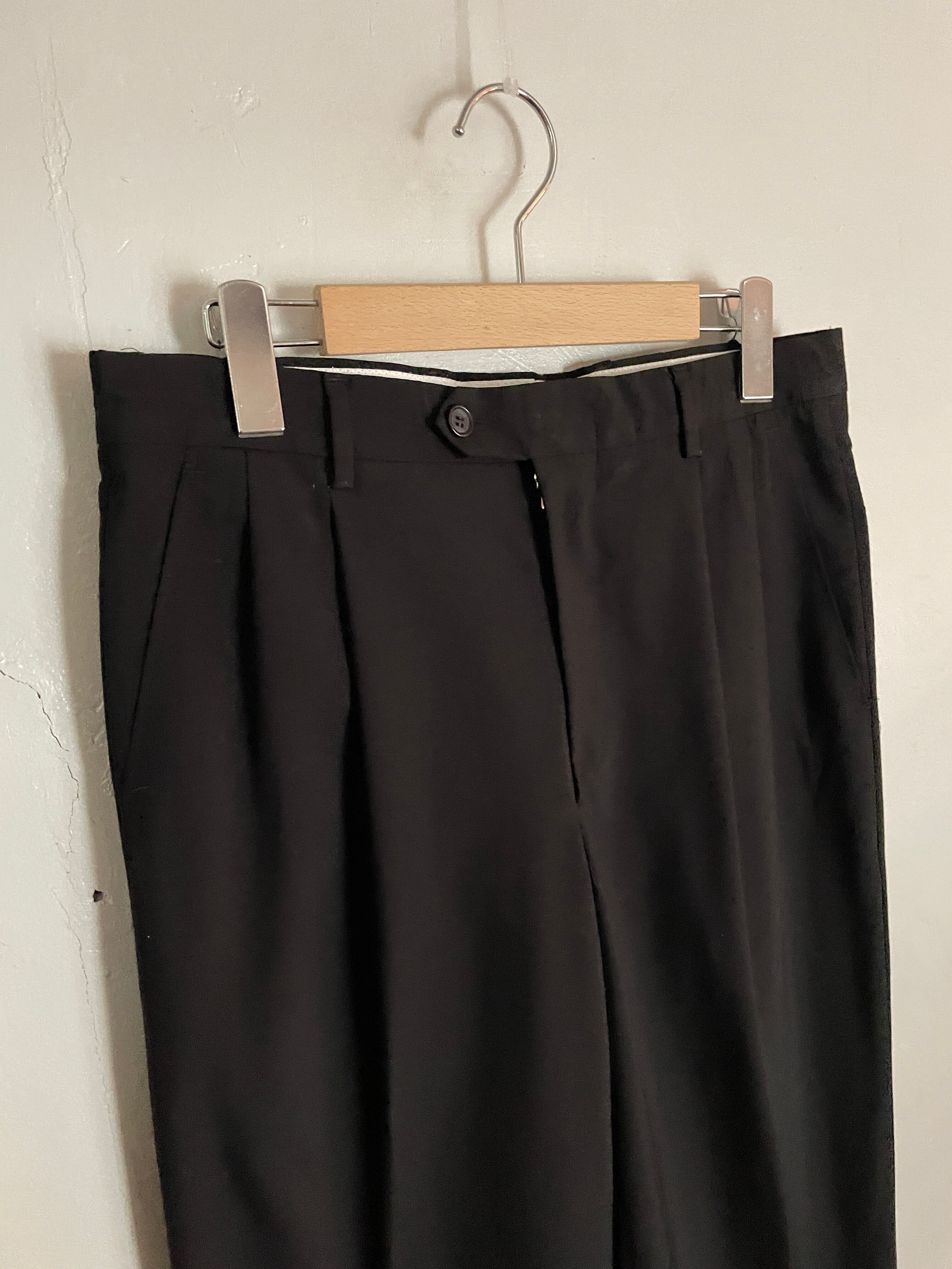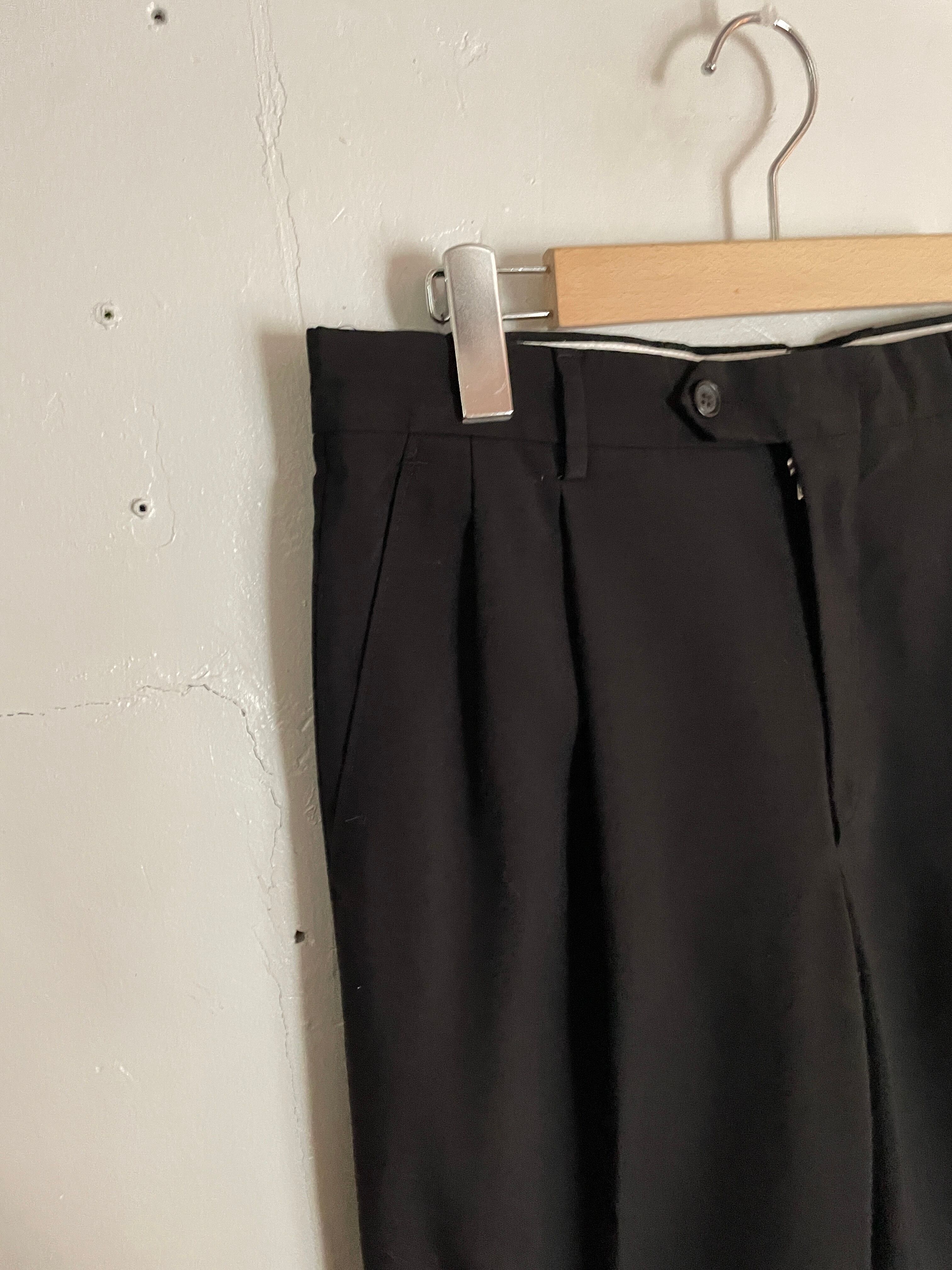 2タックで、綺麗なワイドストレートのスラックス。シンプルなブラックカラーで使いやすい一本です。シルエットの良さはさすがイタリア製です。トップスを選ばず、様々なファッションに取り入れやすい万能スラックスです。