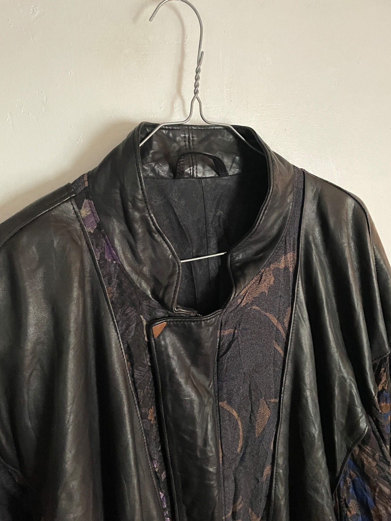 Old Black Leather×Whole Pattern Switching Design Jacket