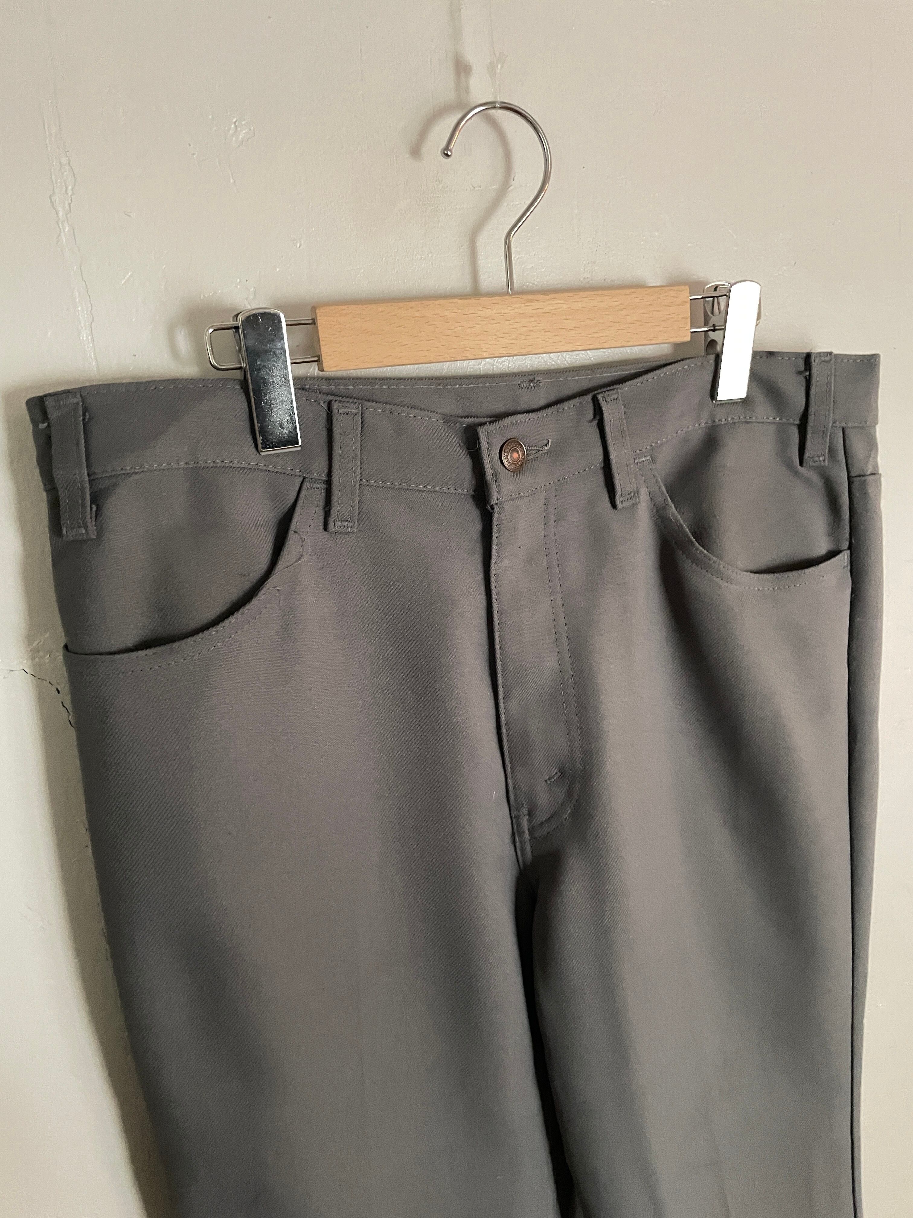 リーバイスの名作、スタプレスト、通称スタプレ。カラーはグレーで程良くフレアした綺麗なシルエットが魅力的です。ウエストは太めでレングスも長め。ルーズなシルエットで履けそうです。やや汚れは見られますが、それも含めて雰囲気のある一本だと思います。様々なアイテムとの相性が良く使いやすいパンツかと思います。