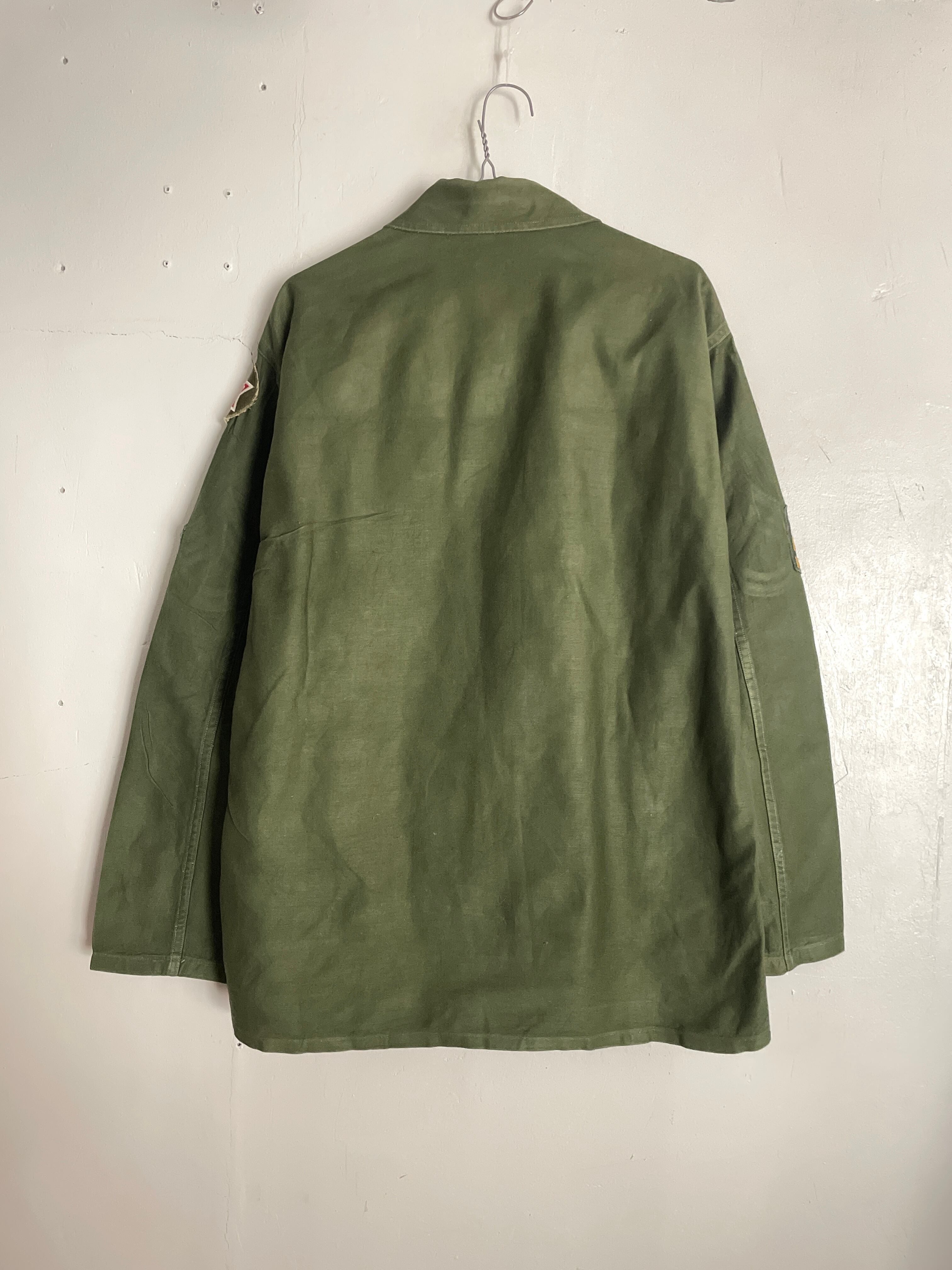 U.S.アーミーのユーティリティーシャツ。ミルスペックがやや消えかけていますが、おそらく62年製。ワッペンがところどころに付けられており、素材がパリッとしていることから一度糊付けされている事が考えられます。全体的な状態も非常に良く、嫌なダメージやスレもありません。一枚でも重ね着でも、いろんなシチュエーションで活躍してくれそうです。
