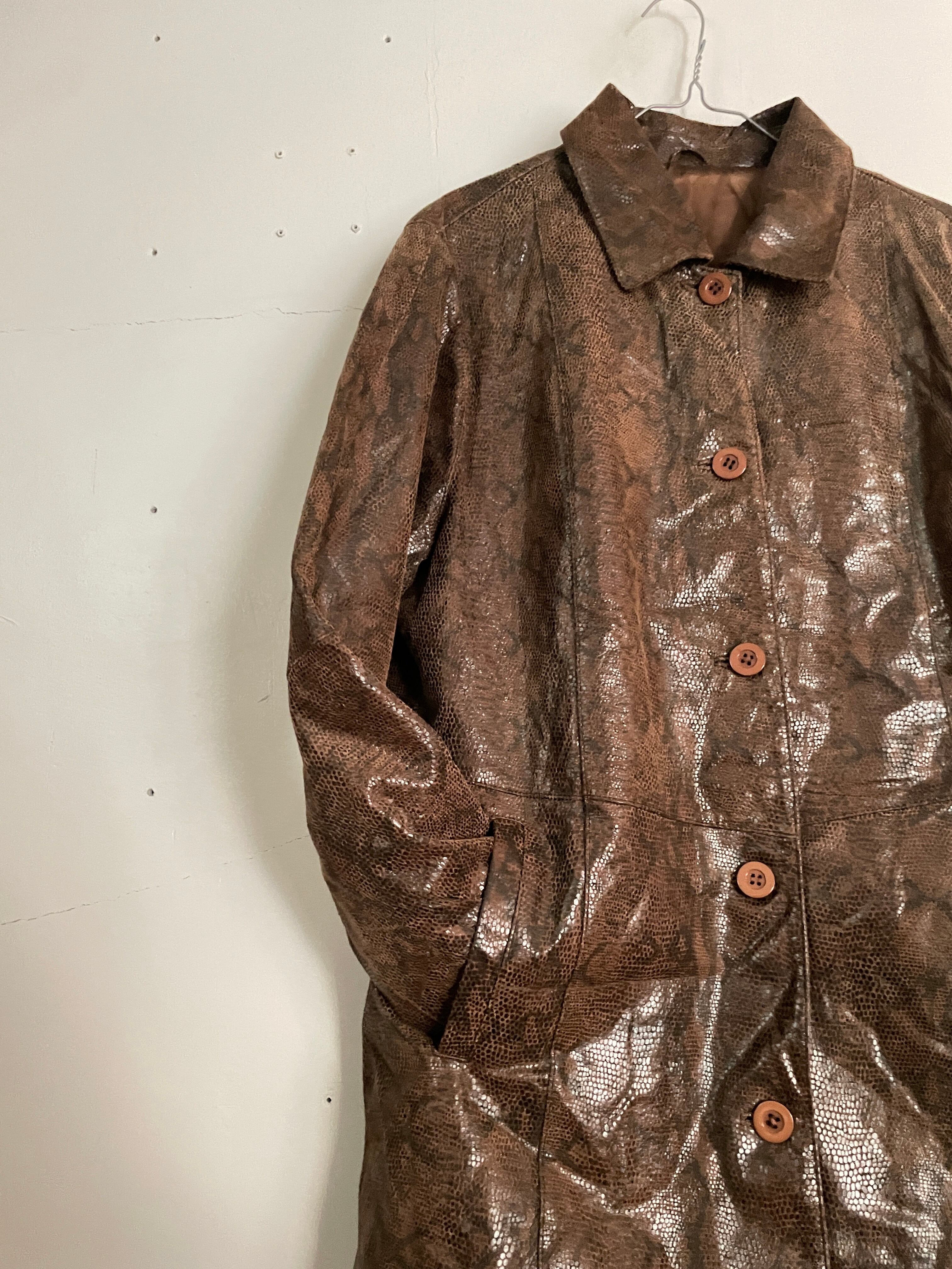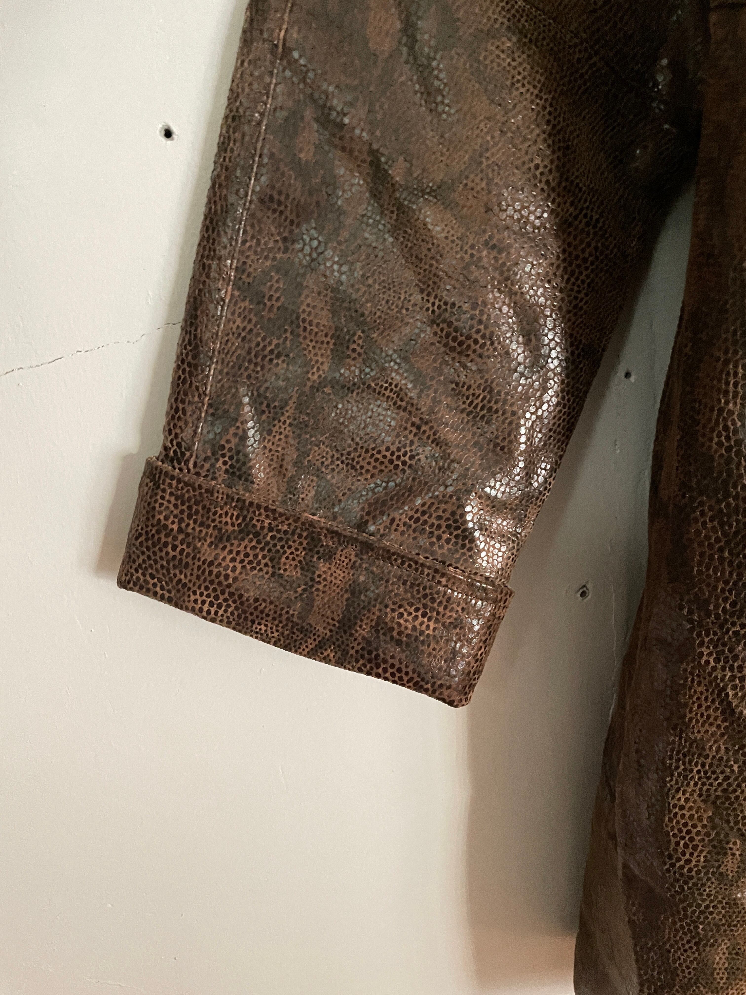 Old Crocodile Pattern Leather Jacket