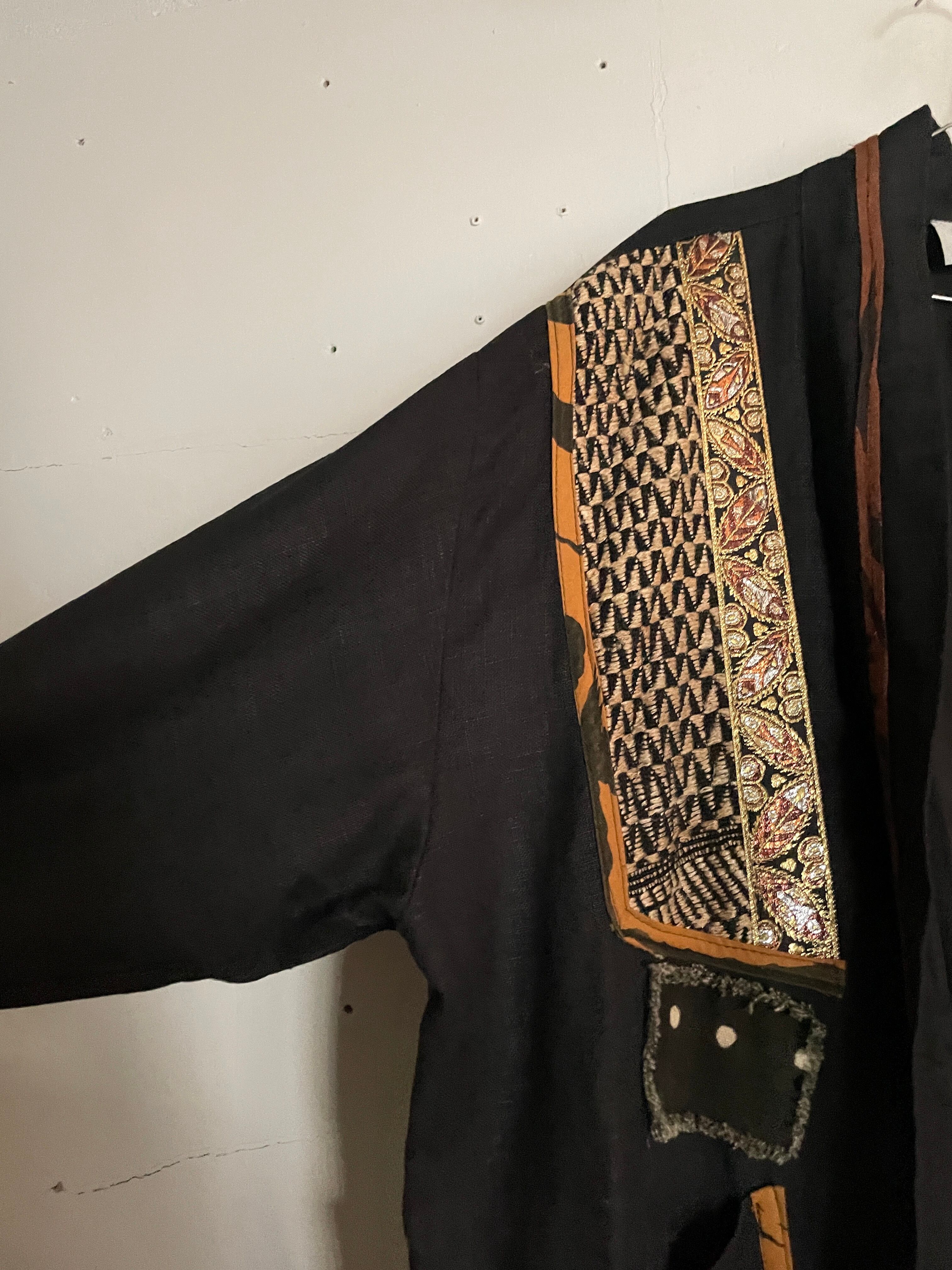 Old FIXSUN Patchwork Design Linen Over Gown Coat
