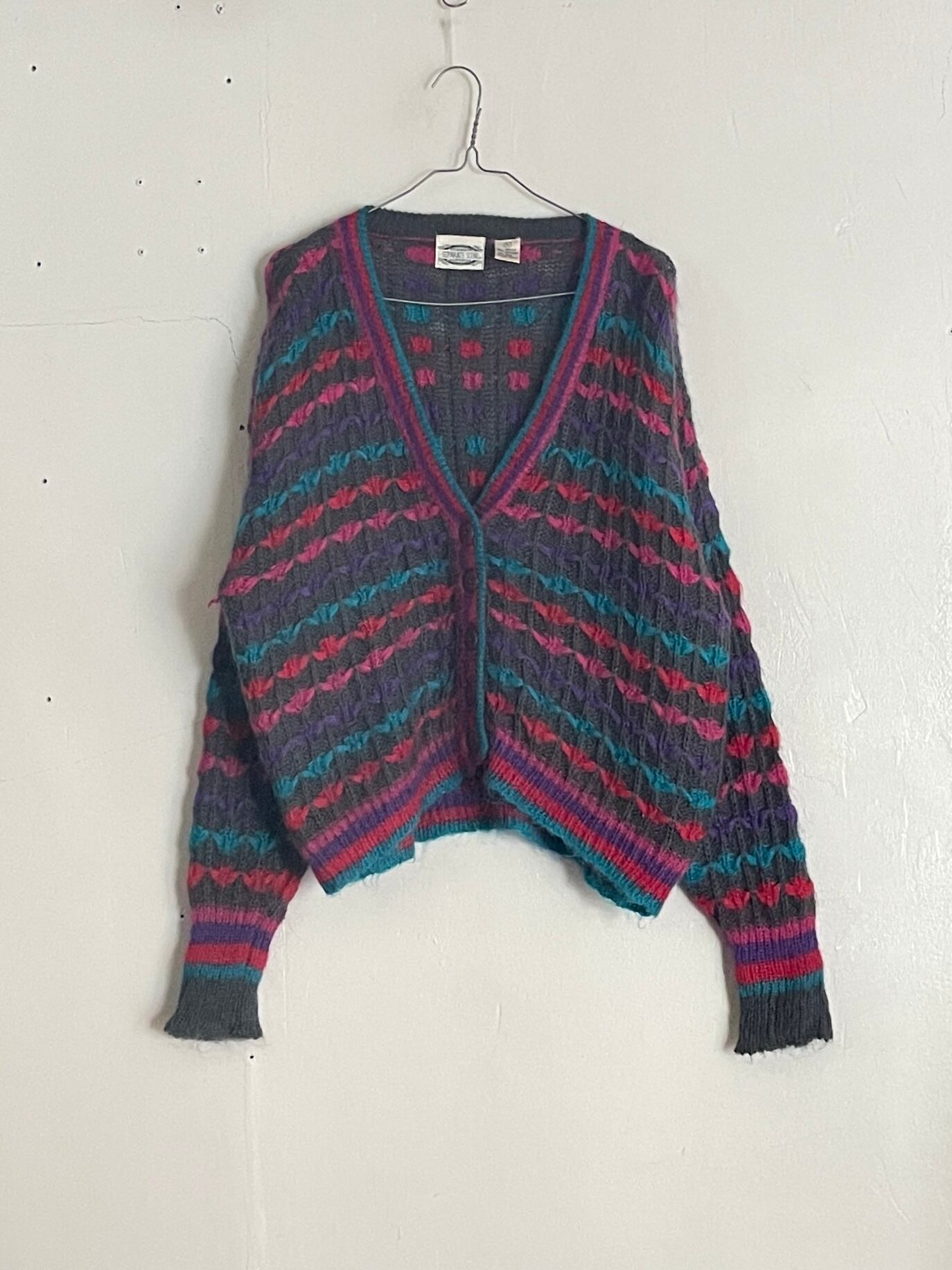 Old Colorful Design Acrylic×Wool Knit Cardigan