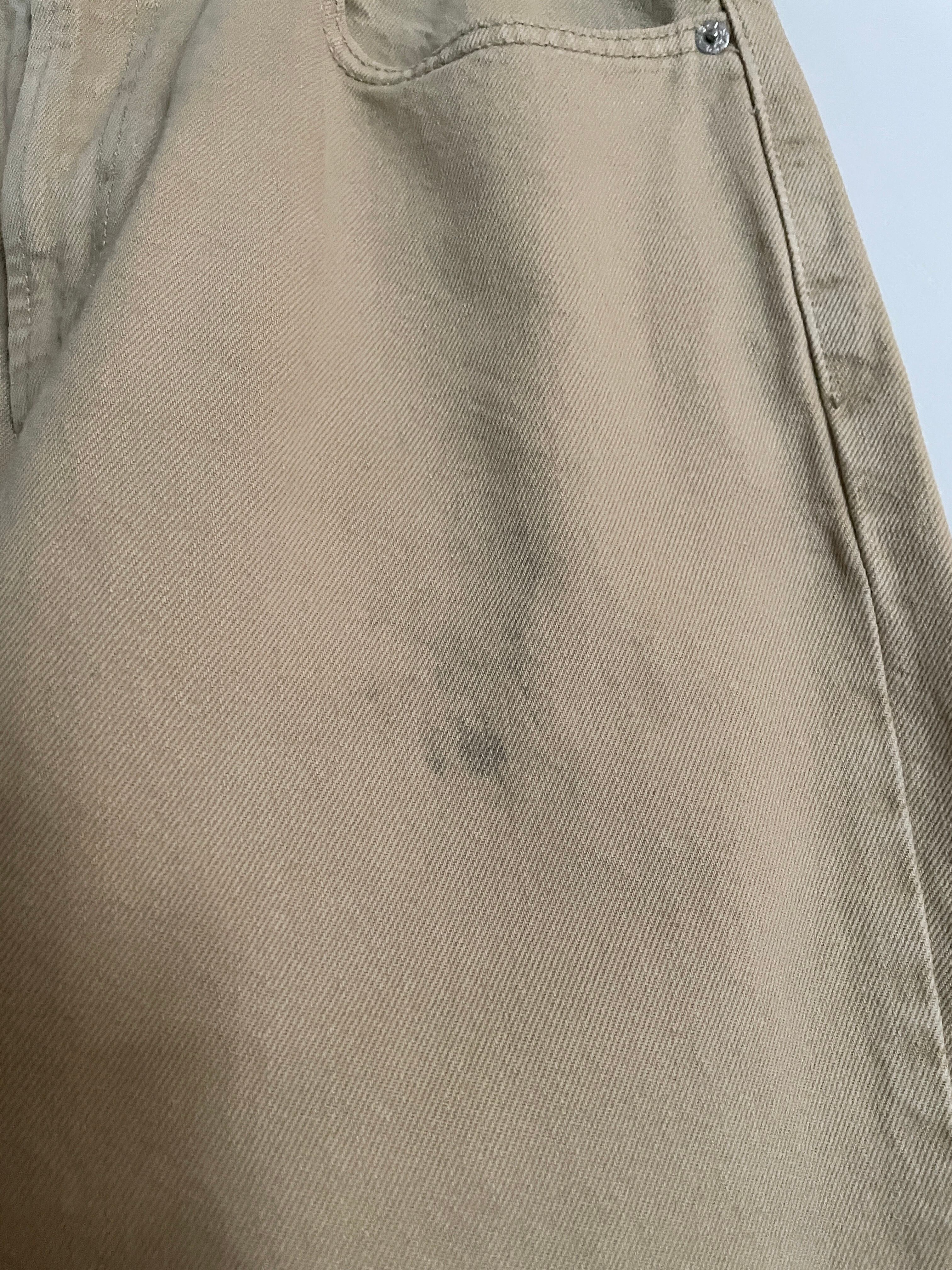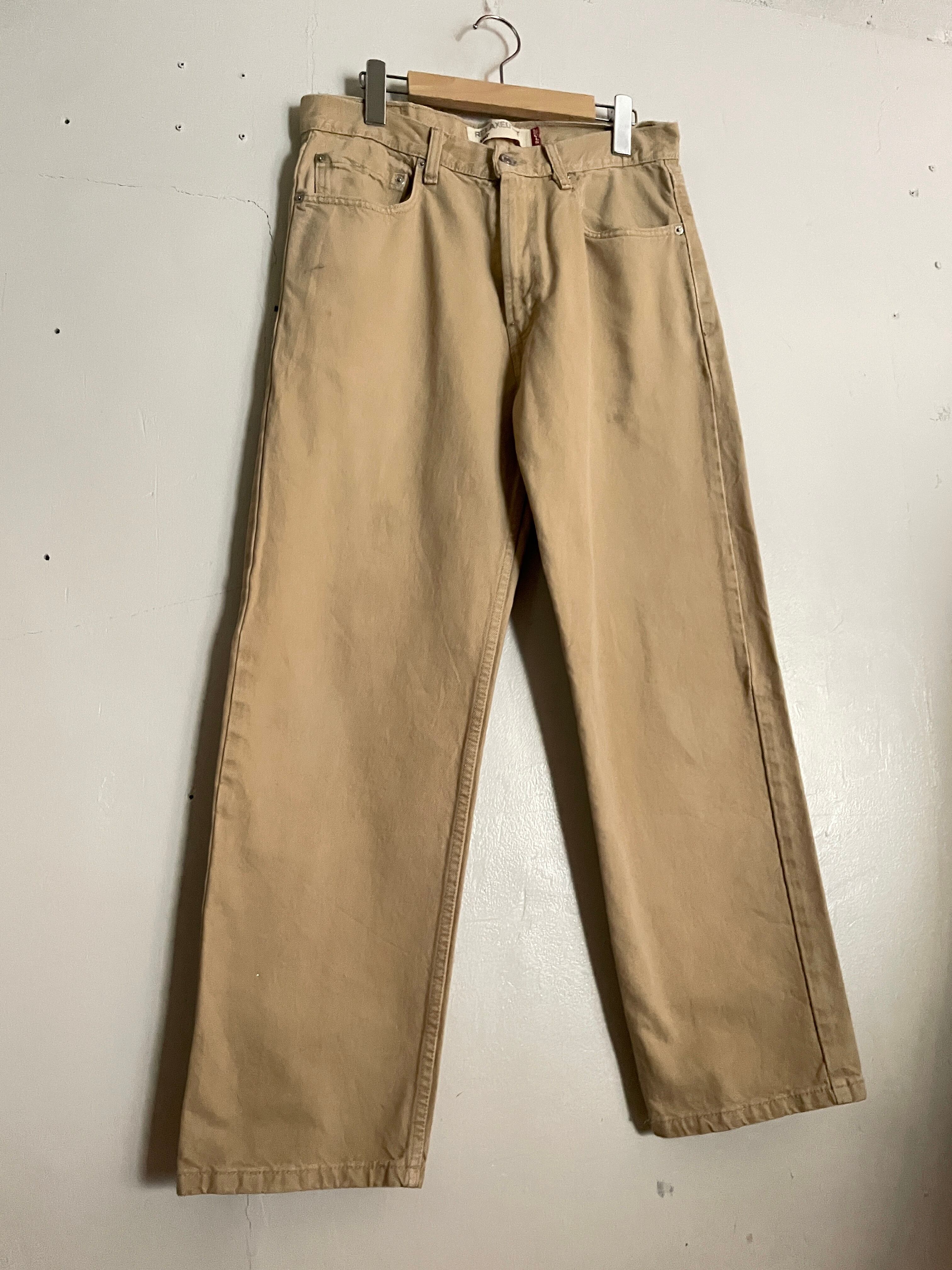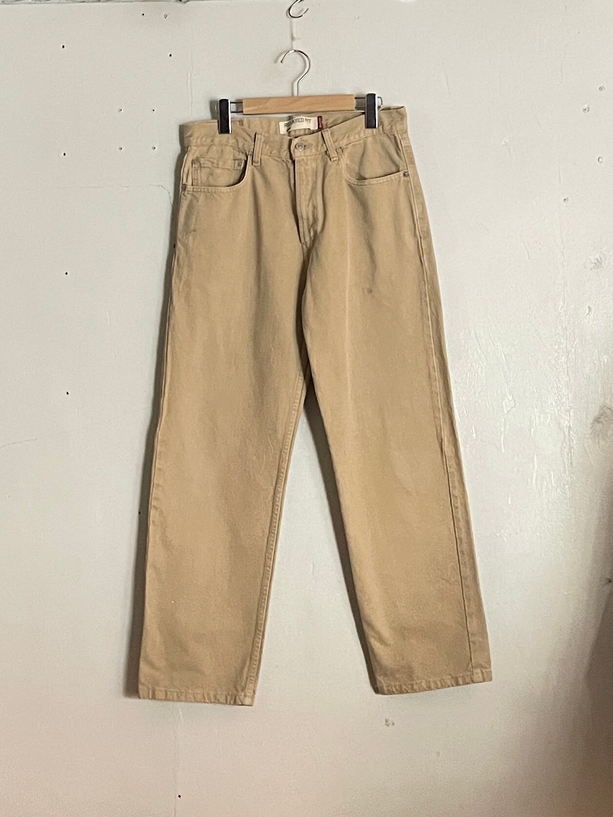 ライトベージュカラーで、綺麗なワイドテーパードシルエットが魅力的な、リーバイス550デニムパンツ。履いた時にガツッと靴に溜まってくれる、ストリート感のあるグッドシルエットです。季節問わず、様々なアイテムとの相性の良い一本です。