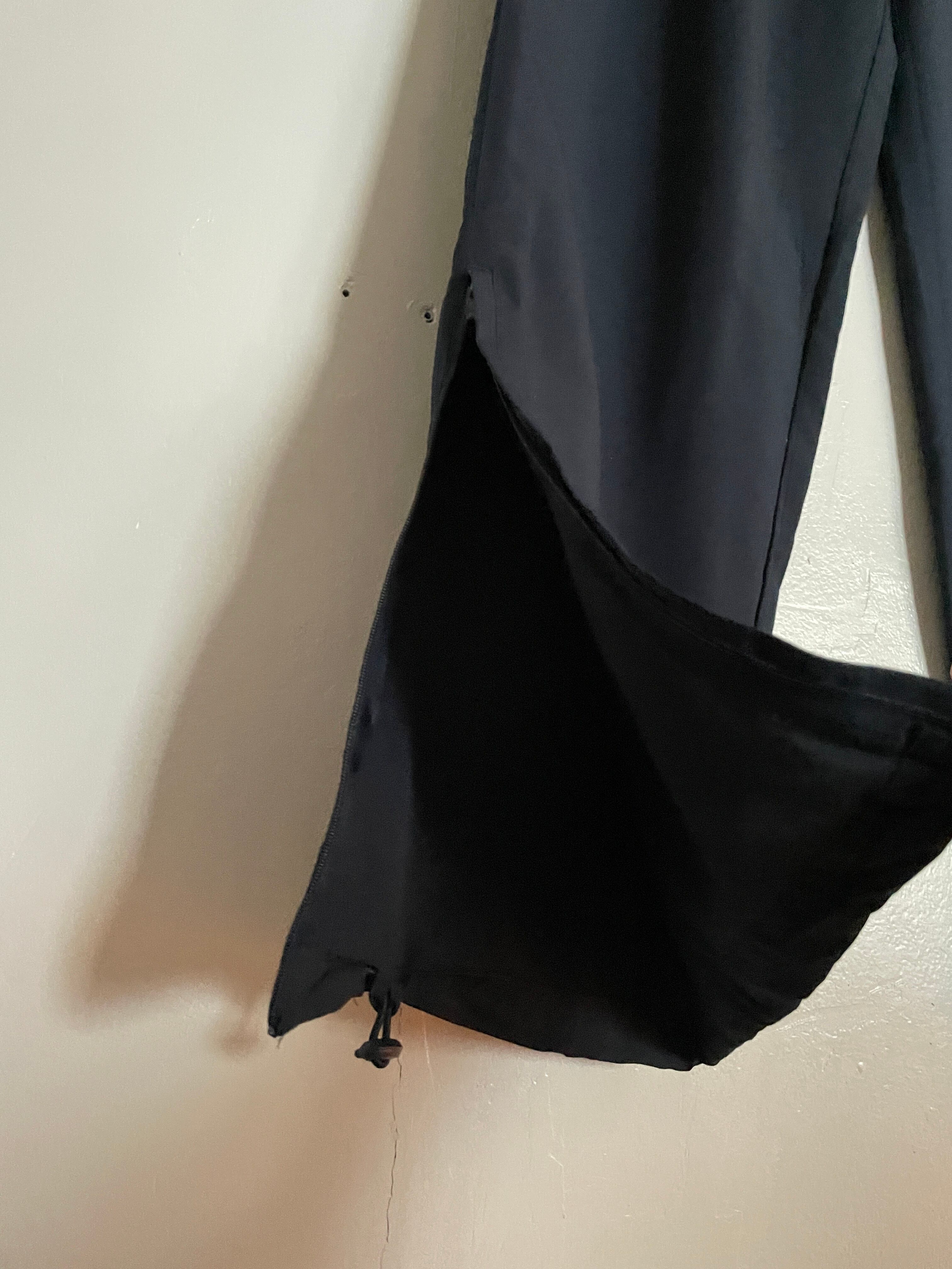無地でシンプルなデザインのアディダストラックパンツ。サイドにラインが入っていたり、切替えデザインがあるものをよく見ますが、こちらはできる限り無駄を省いた、一見スラックスにも見えるようなデザインです。ウエストにはドローコード入り、裾にもコードが入っているので裾幅の調整も可能、サイドにはジップも付いているので開けてスリットパンツのように穿くのもおすすめです。