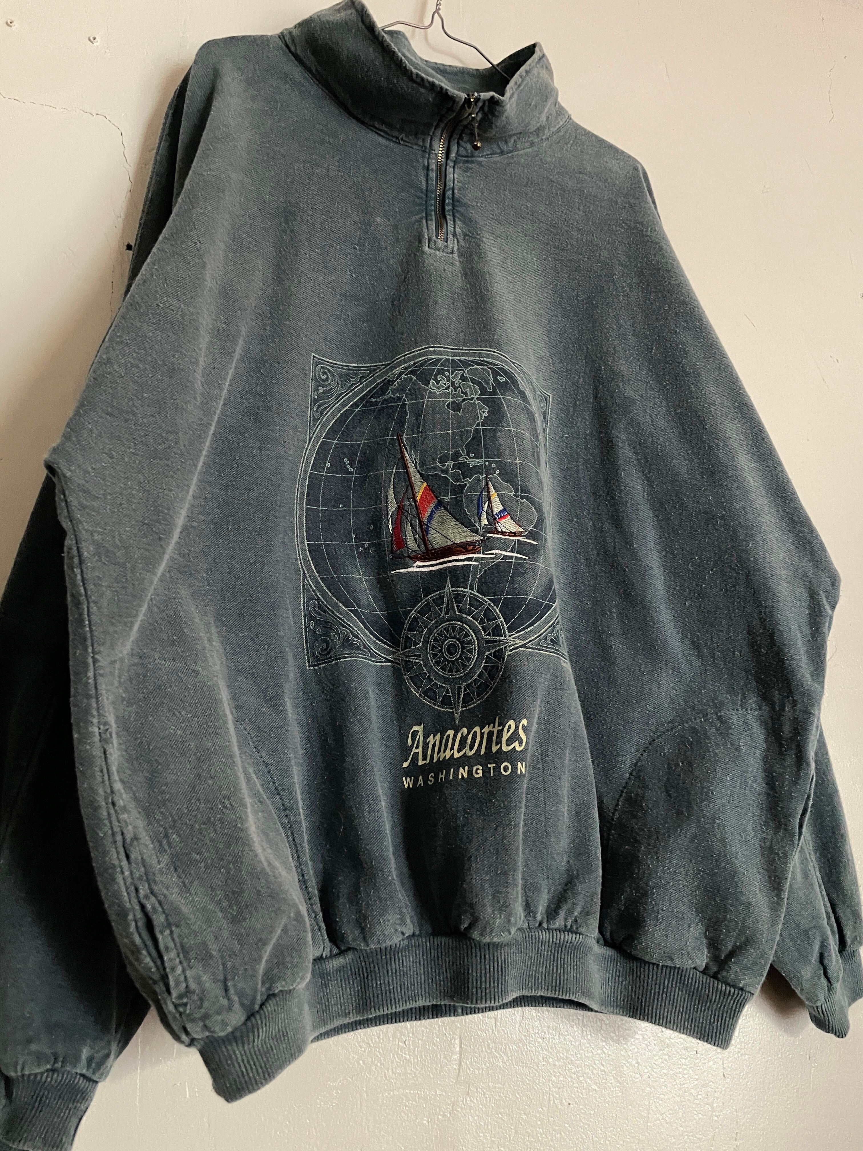 Old "Anacortes" Embroidery Design Half Zip Sweat Pullover