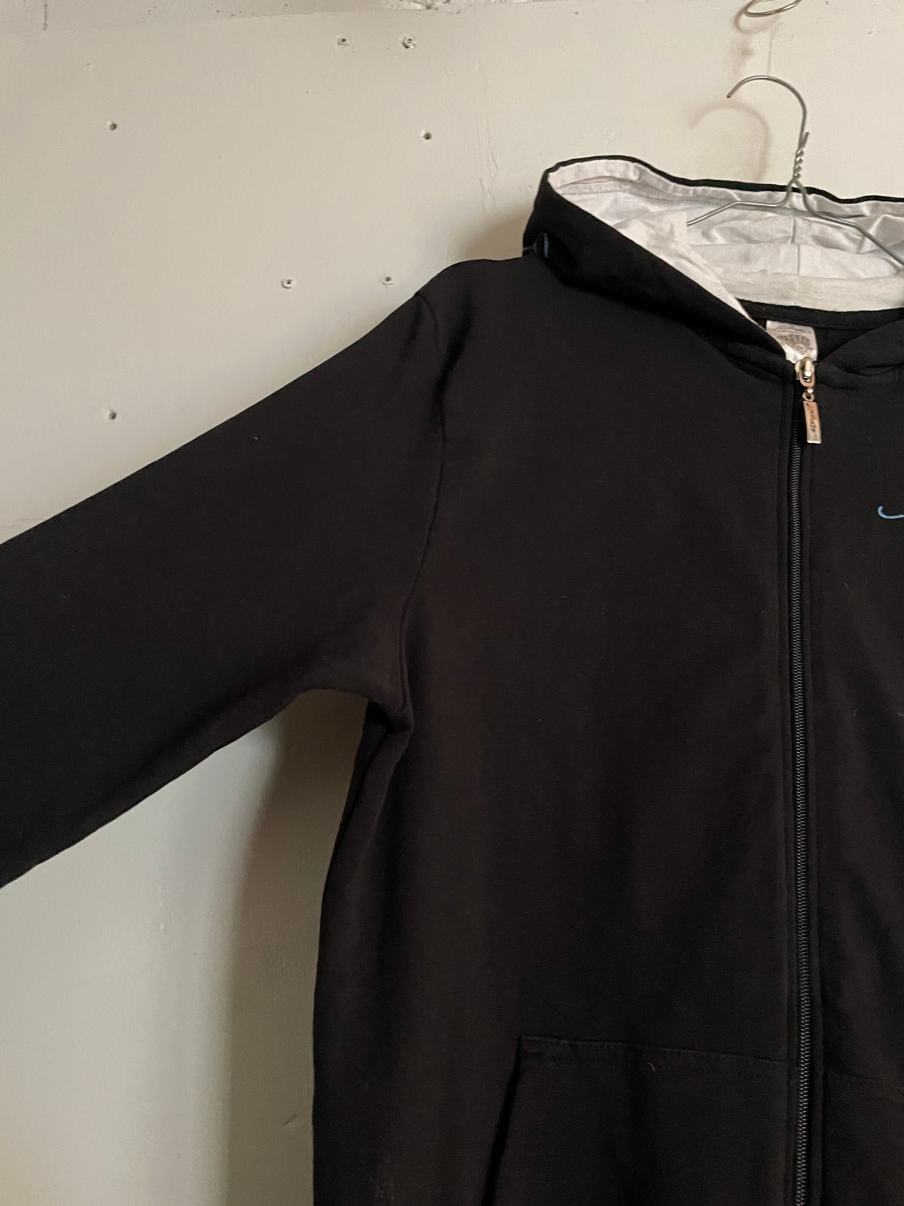 ブラックボディに、アメリカをモチーフにしたイーグルプリントが両面に施された、エドハーディーのジップパーカー。フロント部分にはワンポイント。バックにはインパクトのあるデカプリント。スレやキラッと光るビーズなど、エドハーディーらしいデザインの効いた一着になってます。タイトめなシルエットで、Y2Kな雰囲気を感じられる一着です。
