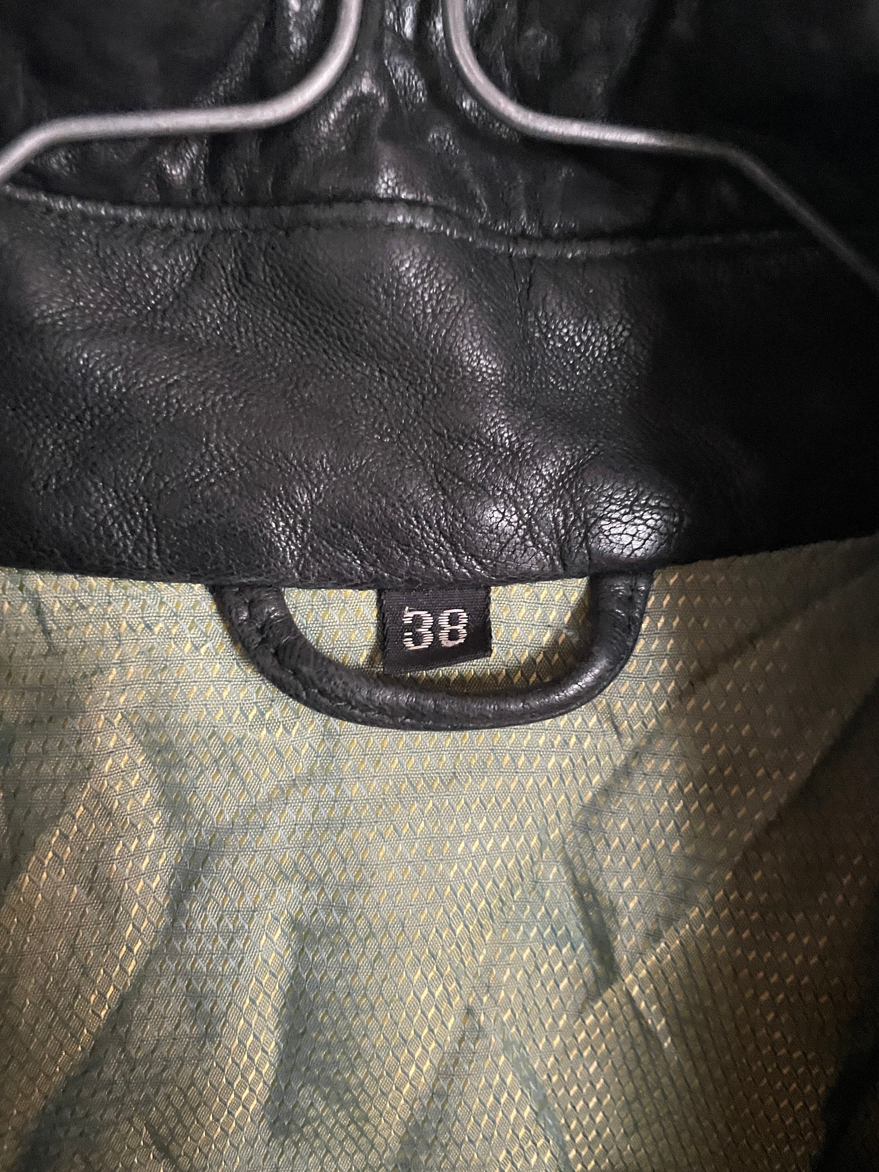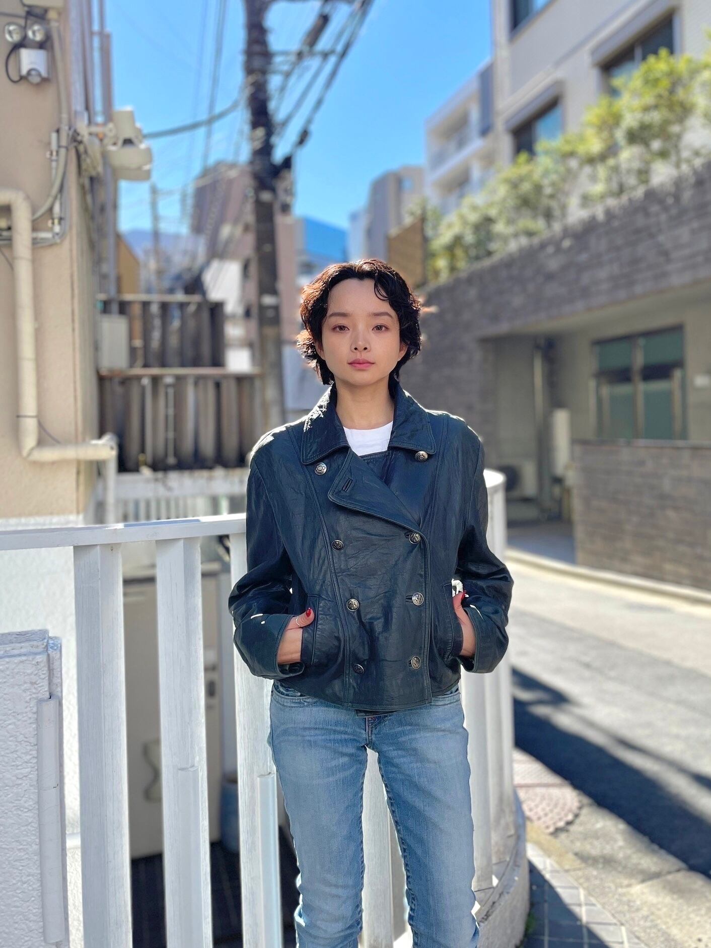 雰囲気のある深めなグリーンボディで、前開きのボタンデザインが特徴的なレザージャケット。柔らかいモチっとしたレザー素材、短丈シルエットでY2Kな雰囲気も感じられる一着です。裏地はサラッとしたレーヨンとアセテート素材なので着やすさも抜群です。ファッションのメインになってくれるアイテムです。