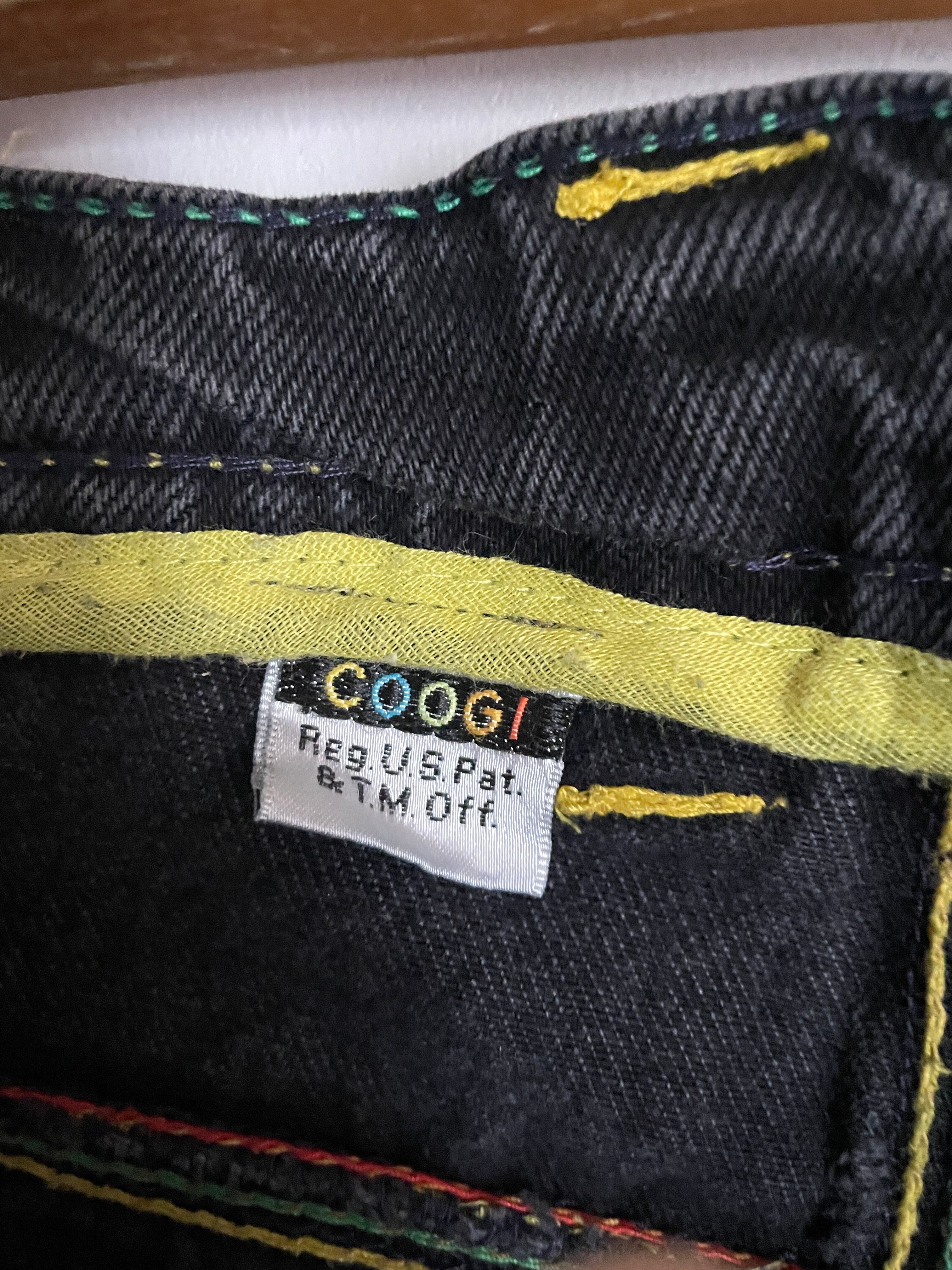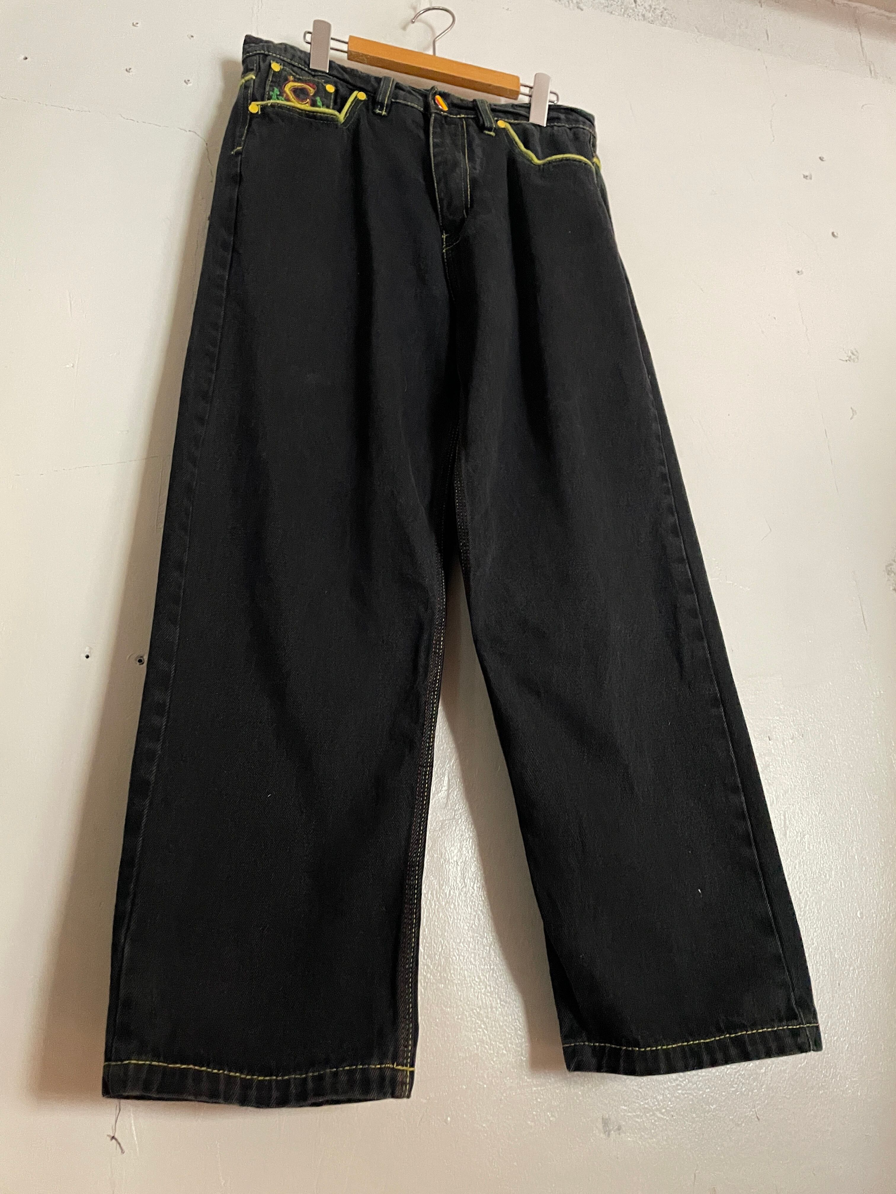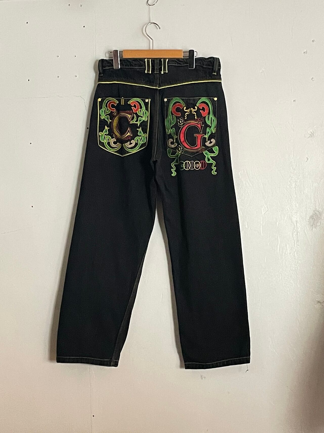 Old COOGI Black Embroidery Design Wide Denim Pants