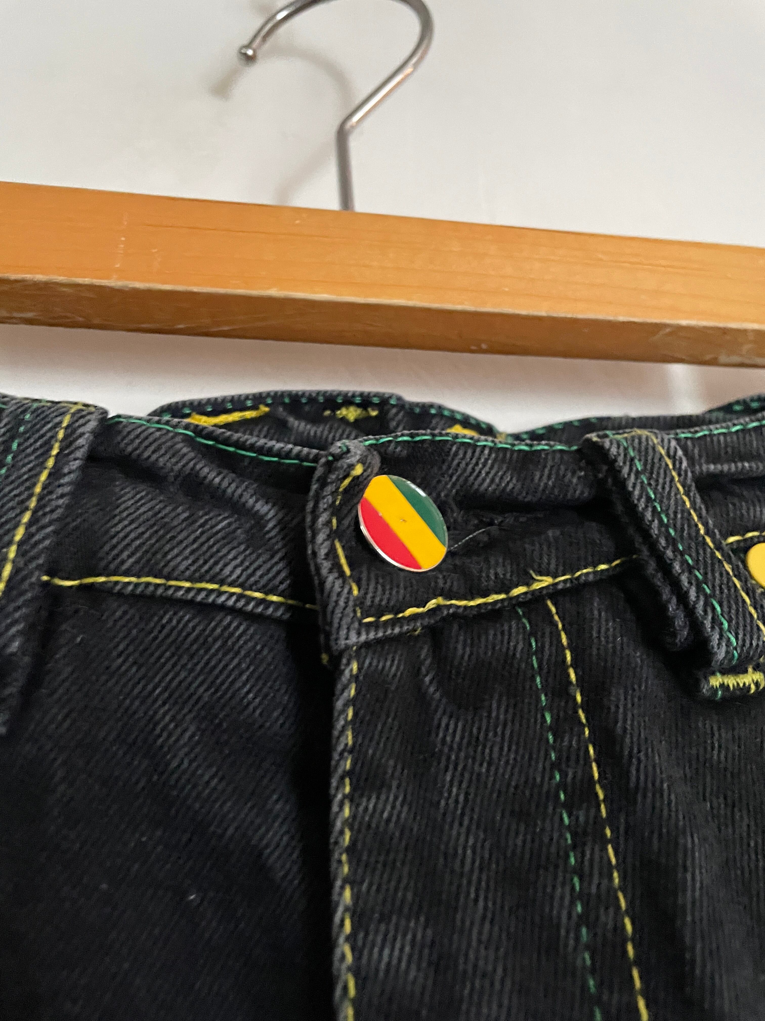 ニットなどで有名な、オーストラリアのブランド、クージーのワイドデニムパンツ。さすがクージーといった、インパクトのあるデザインが施されています。レゲエカラーの光沢のある細かな刺繍がなんとも言えないかっこよさ。ステッチまでもがレゲエカラーで、こだわりが感じられる一本です。ヒップホップな雰囲気のあるワイドストレートシルエット。ファッションの主役になってくれるアイテムです。