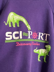 パープルボディに、アメリカのルイジアナ州にある博物館のネームプリントと、恐竜がプリントされたスウェット。リアルな恐竜プリントがグッドです。ボディの色味とプリントの配色のバランス感が絶妙に良いです。ボディはヘインズでUSA製。90年のコピーライト入り。厚手過ぎないコットンポリ。大き過ぎず、小さ過ぎないサイズ感なので、男女共におすすめしたいアイテムです。