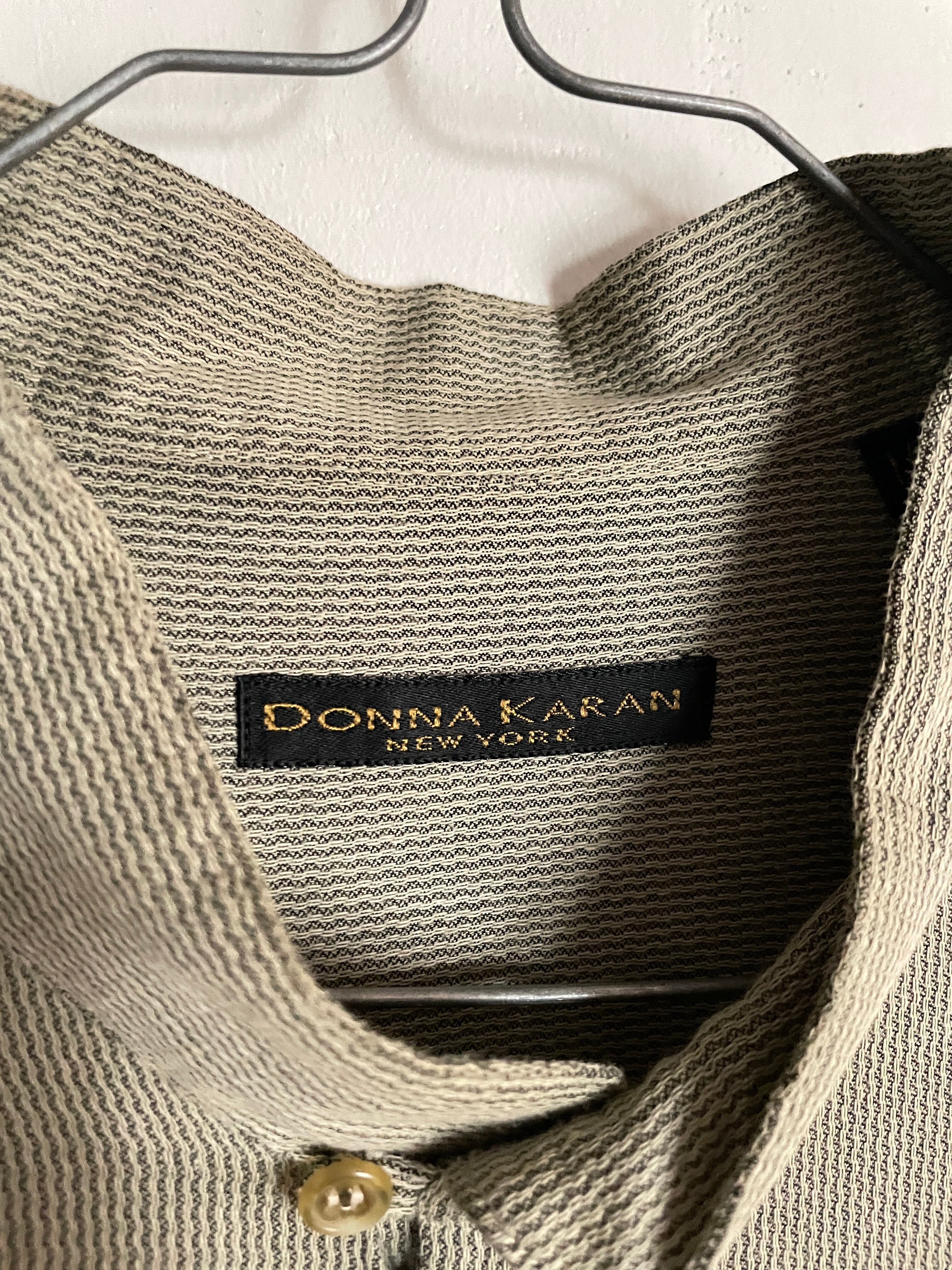 Old DONNA KAREN Beige Band Collar L/S Shirt