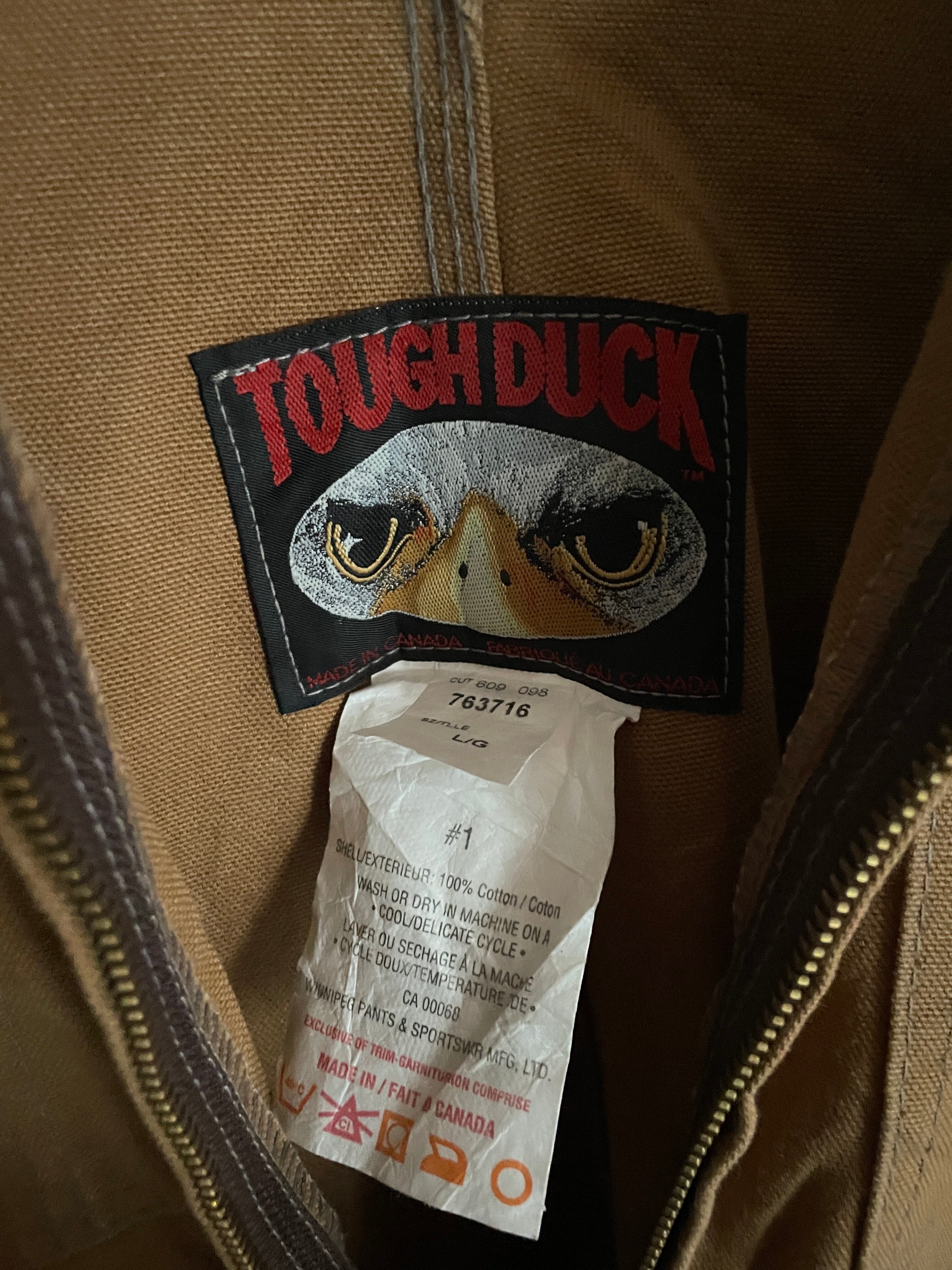カナダのワークブランドとして知られる、タフダックのオーバーオール。色は渋さのあるブラウン。名前の通り、丈夫なコットン生地に、リベットなどが施された文句なしでかっこいい一本です。膝部分はダブルニー仕様になっています。所々の汚れ、ダメージがさりげなくてグッドです。ダブルジップなのもポイントです。かなりビッグで着られるルーズなサイズ感。ストリートな雰囲気をガッツリ感じられるアイテムになってます。