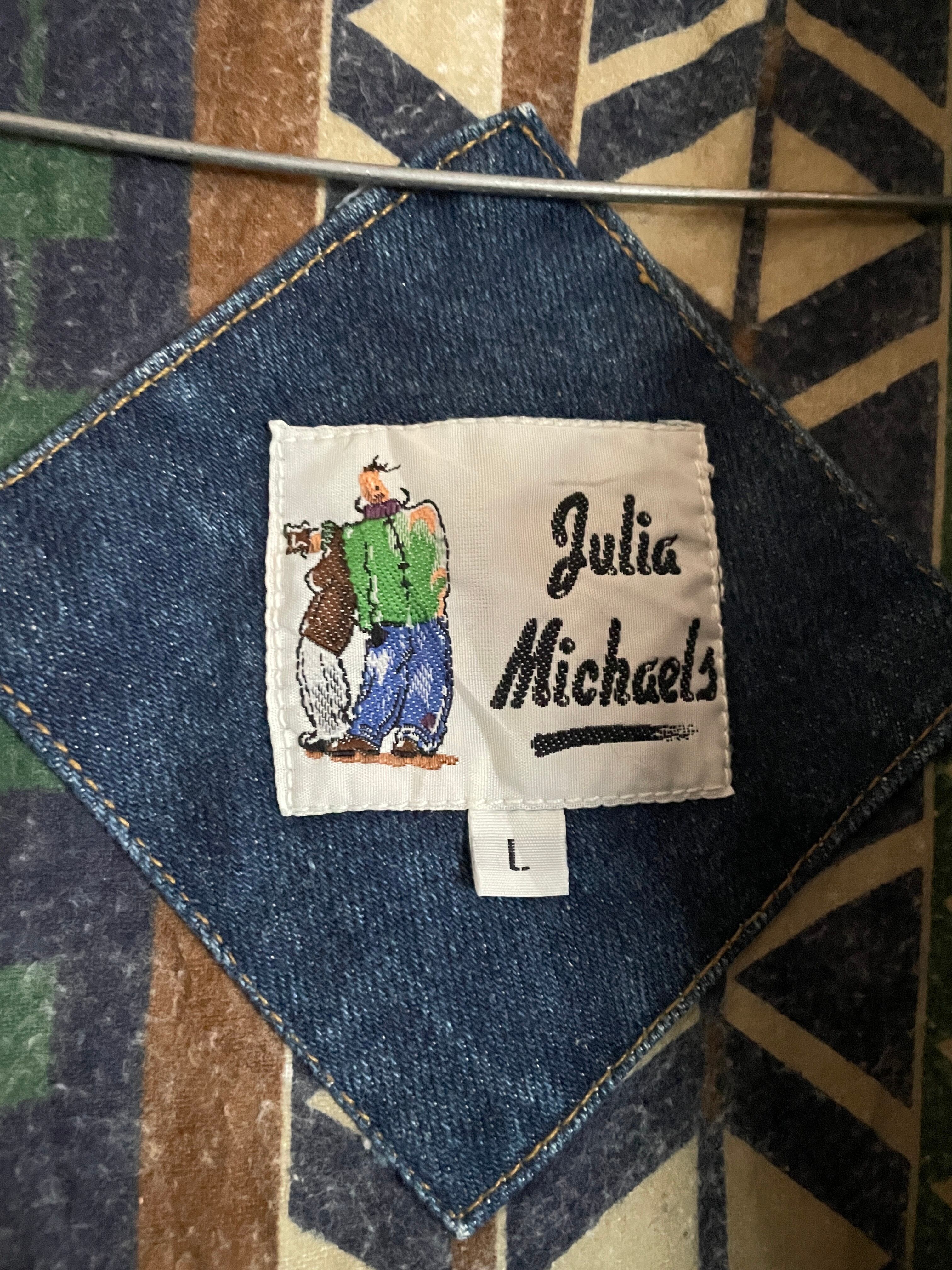 濃いめのインディゴブルーに、コーデュロイの襟が付いたデニムコート。ハンティングジャケットのようなダブルポケットに、ウッド調のボタン、また裏地に柄が使われているため袖口を折り返すことで柄が見えて、良いアクセントになっています。背中心の裾部分にはベンツ入り。身幅広めのゆったりとしたサイズ感です。