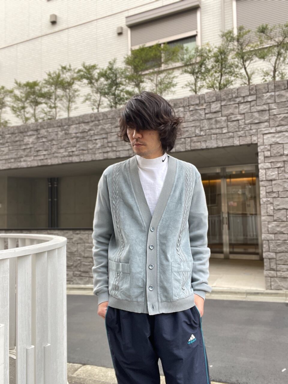 Old Gray Knit×Fake Suede Design Cardigan