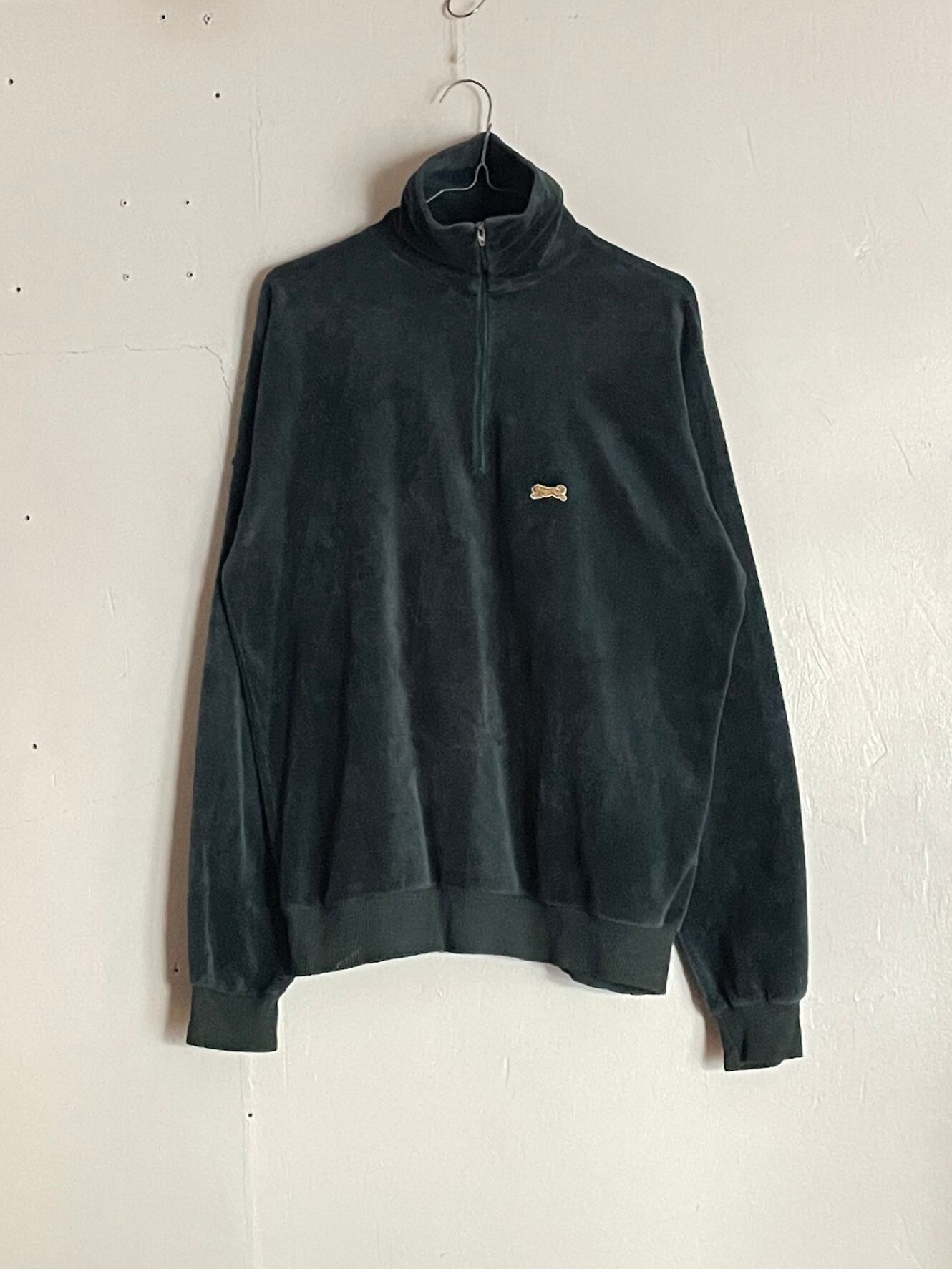 色気の感じられるグリーンボディに、ワンポイントでパッチデザインが施された、キャンパスのベロアハーフジップトラックジャケット。質の良い上品なベロア素材で、ワンポイントのタイガーパッチ。ハイネックなのも魅力的です。ストレッチが効いていてかなり着やすい仕様になってます。大き過ぎず、小さ過ぎないサイズ感で、今の時期にはインナーとしても活躍してくれます。USA製なのもグッドです。