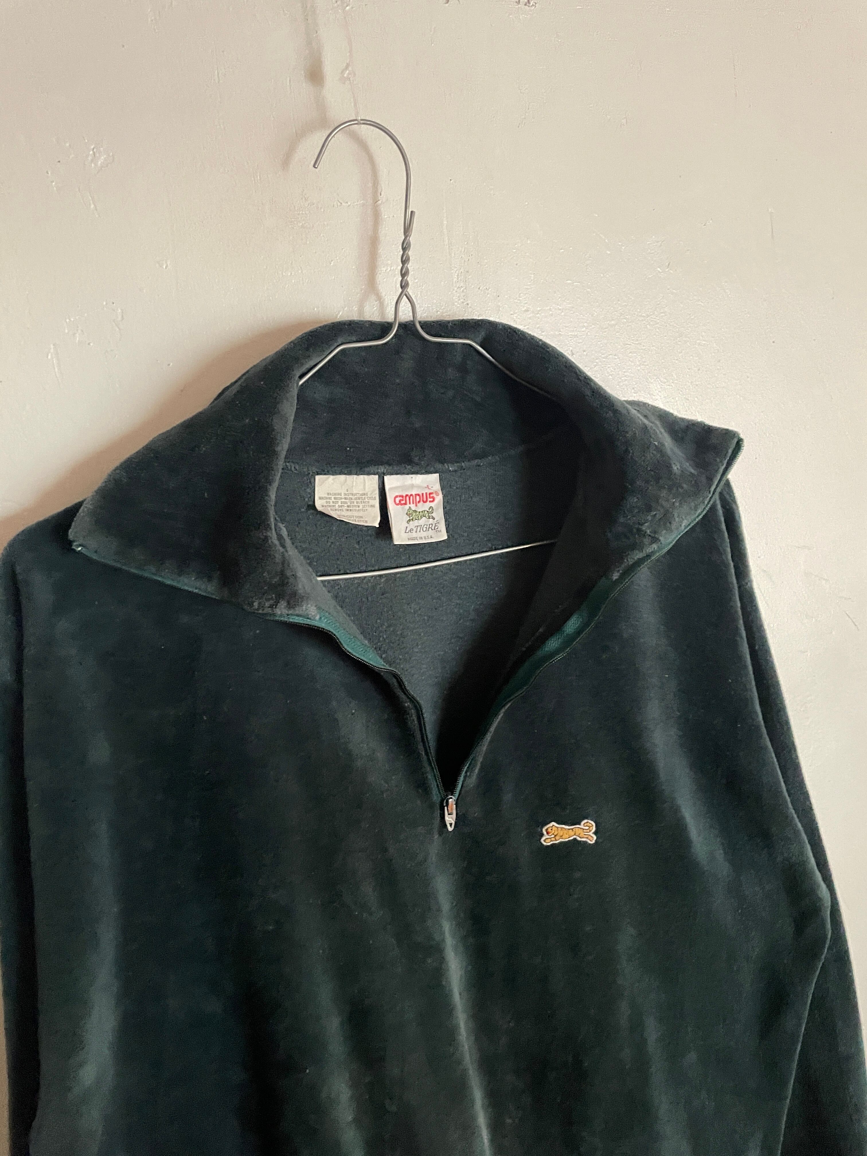 Old CAMPUS Le TIGRE Green Patch Half Zip Velor Track Jacket