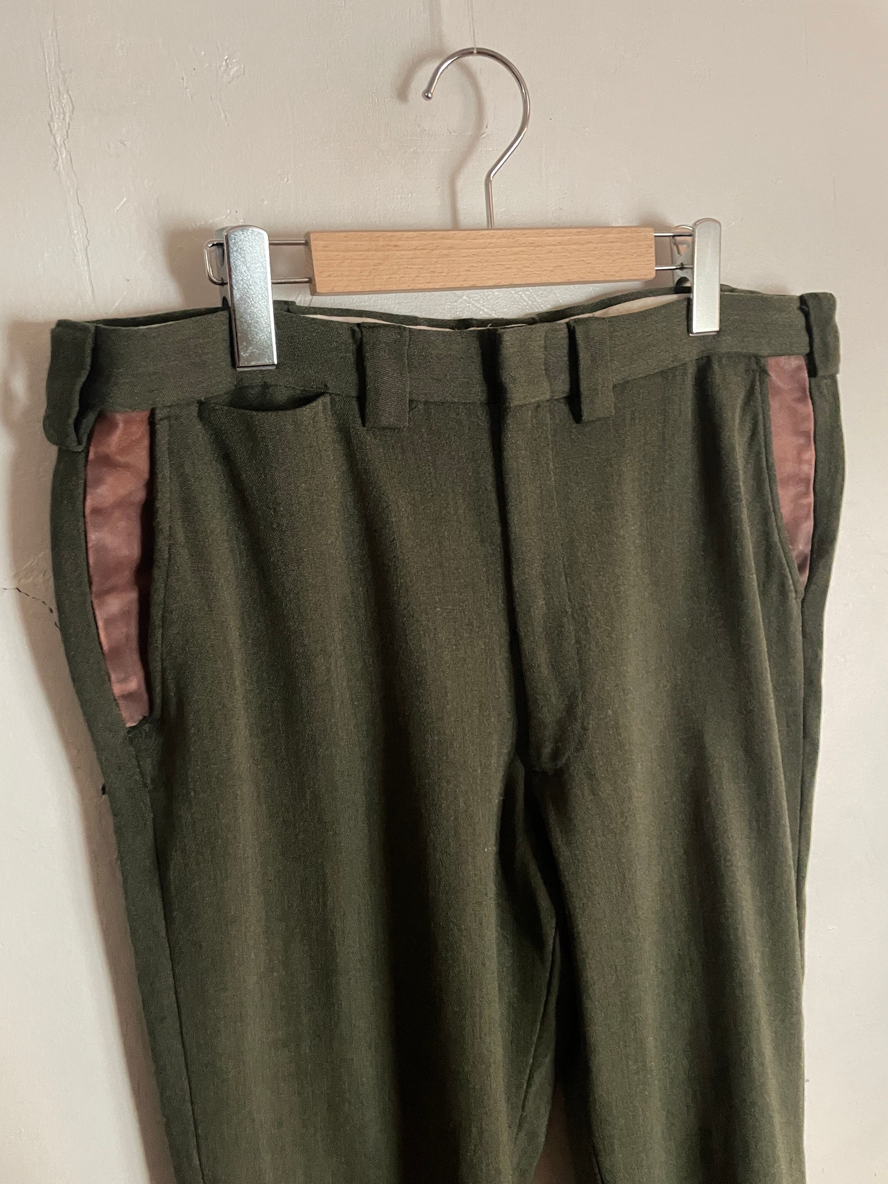 Old L.L.Bean Olive Fake Leather Patch Design Wool Slacks