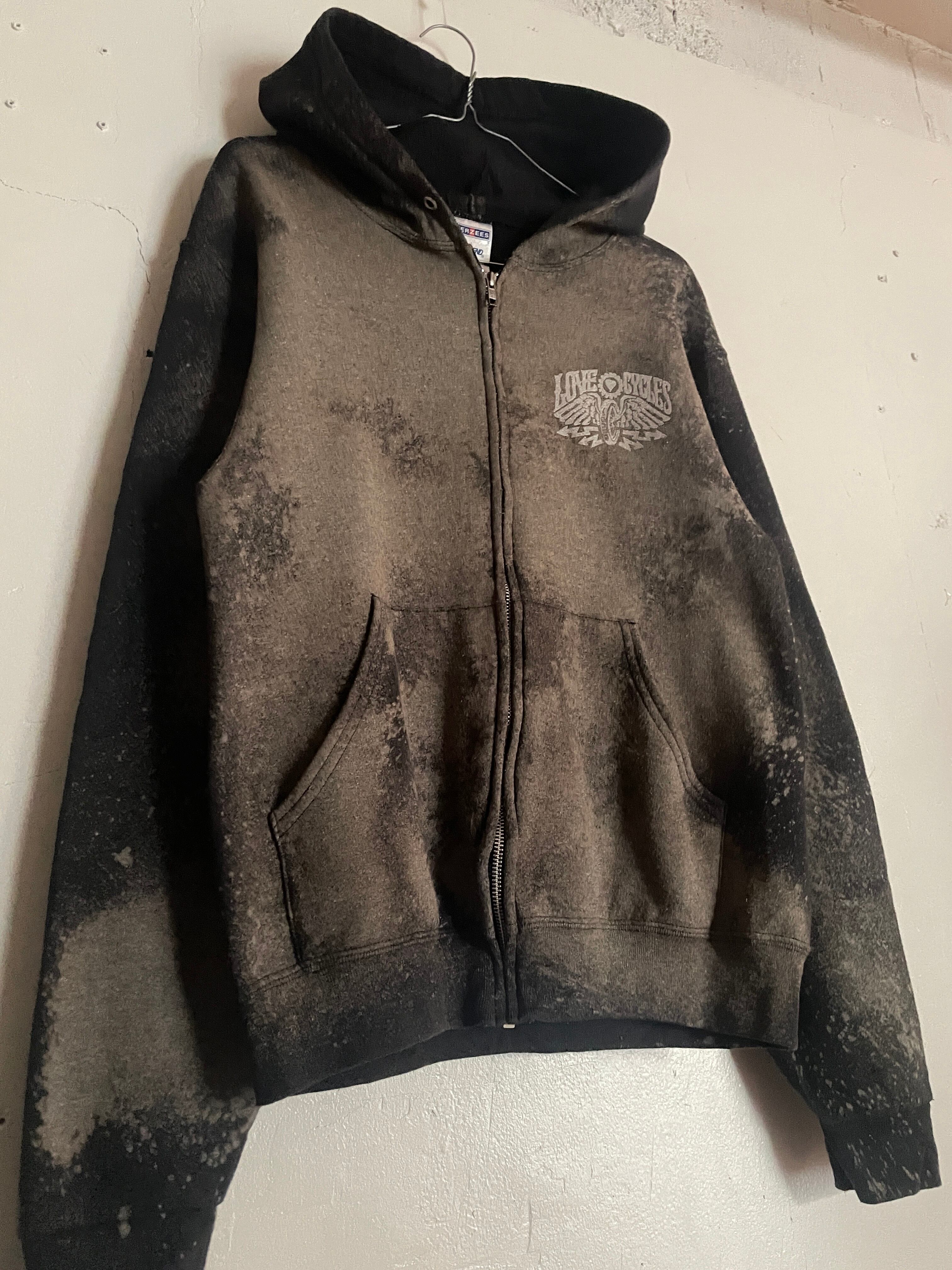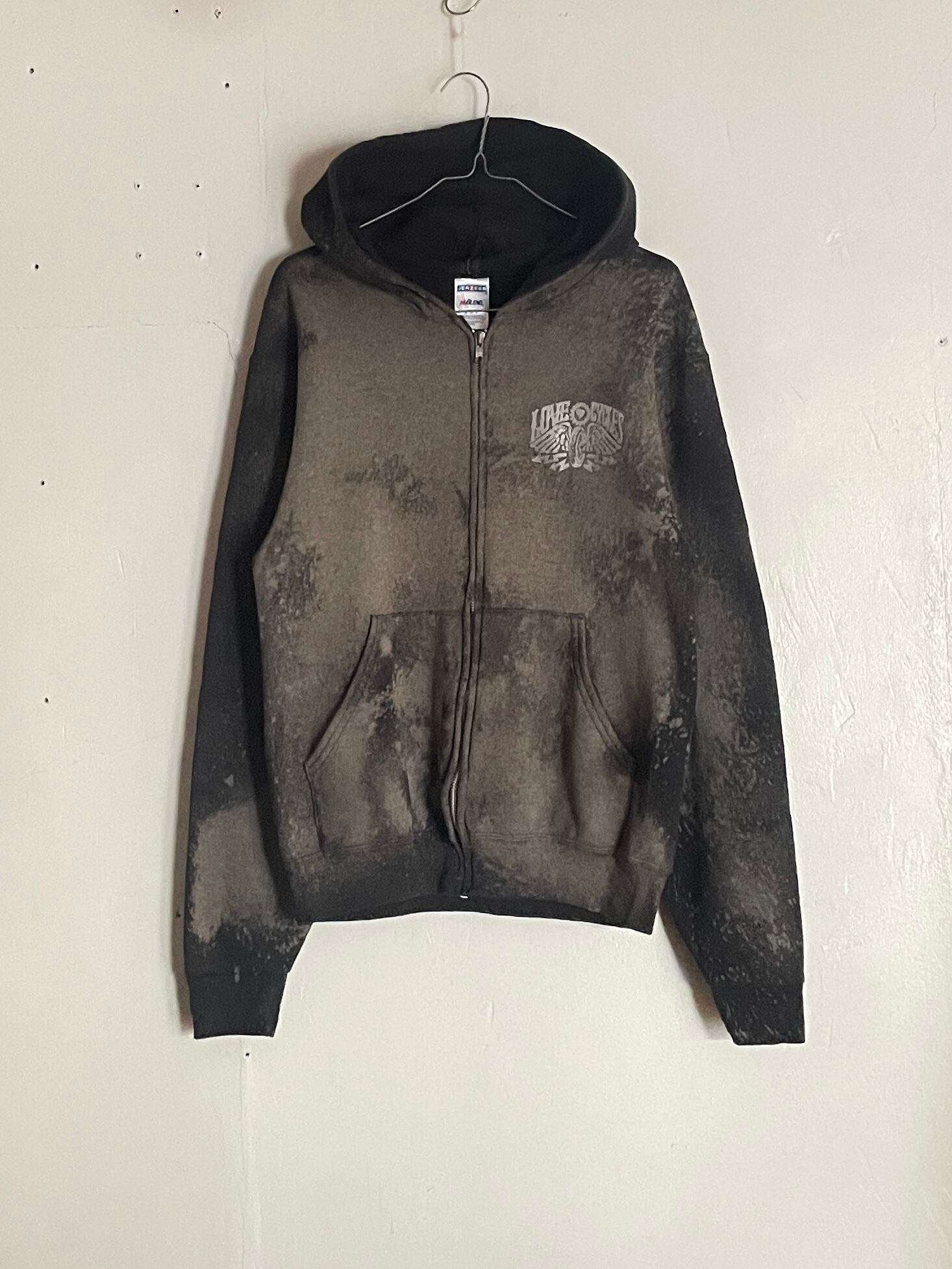 Old "LOVE CYCLES" Bleach Dyed Double Printed Zip Hoodie