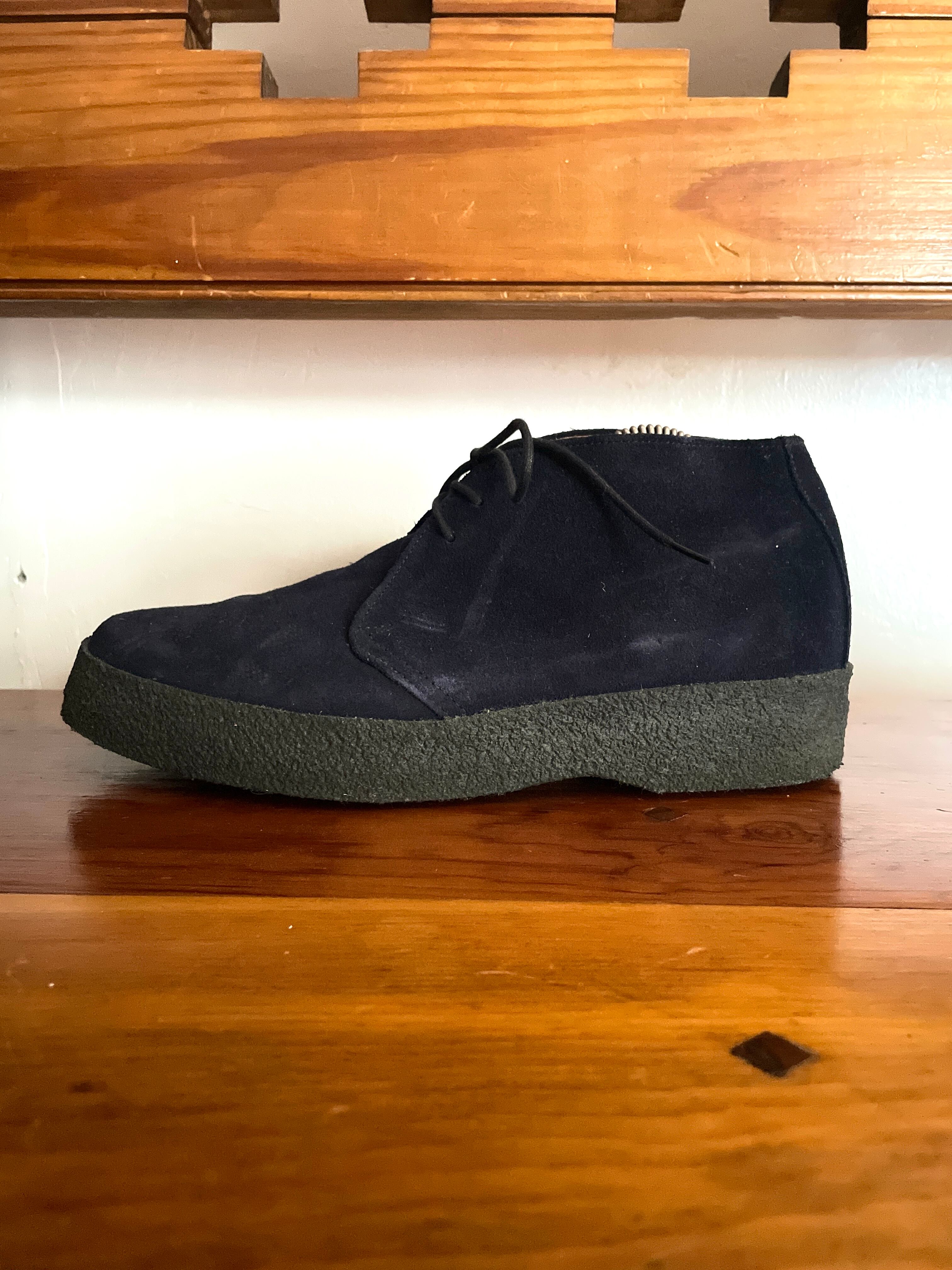 イギリスの歴史ある老舗シューズメーカー、サンダースのチャッカブーツ。かなり黒に近いネイビーのスエード素材で、ソールがやや高めの印象です。柔らかいスエード素材は履きやすく、色も使いやすいです。若干のスレは見られるものの、ソールもしっかりと残っていて、全体的なコンディションは良好です。