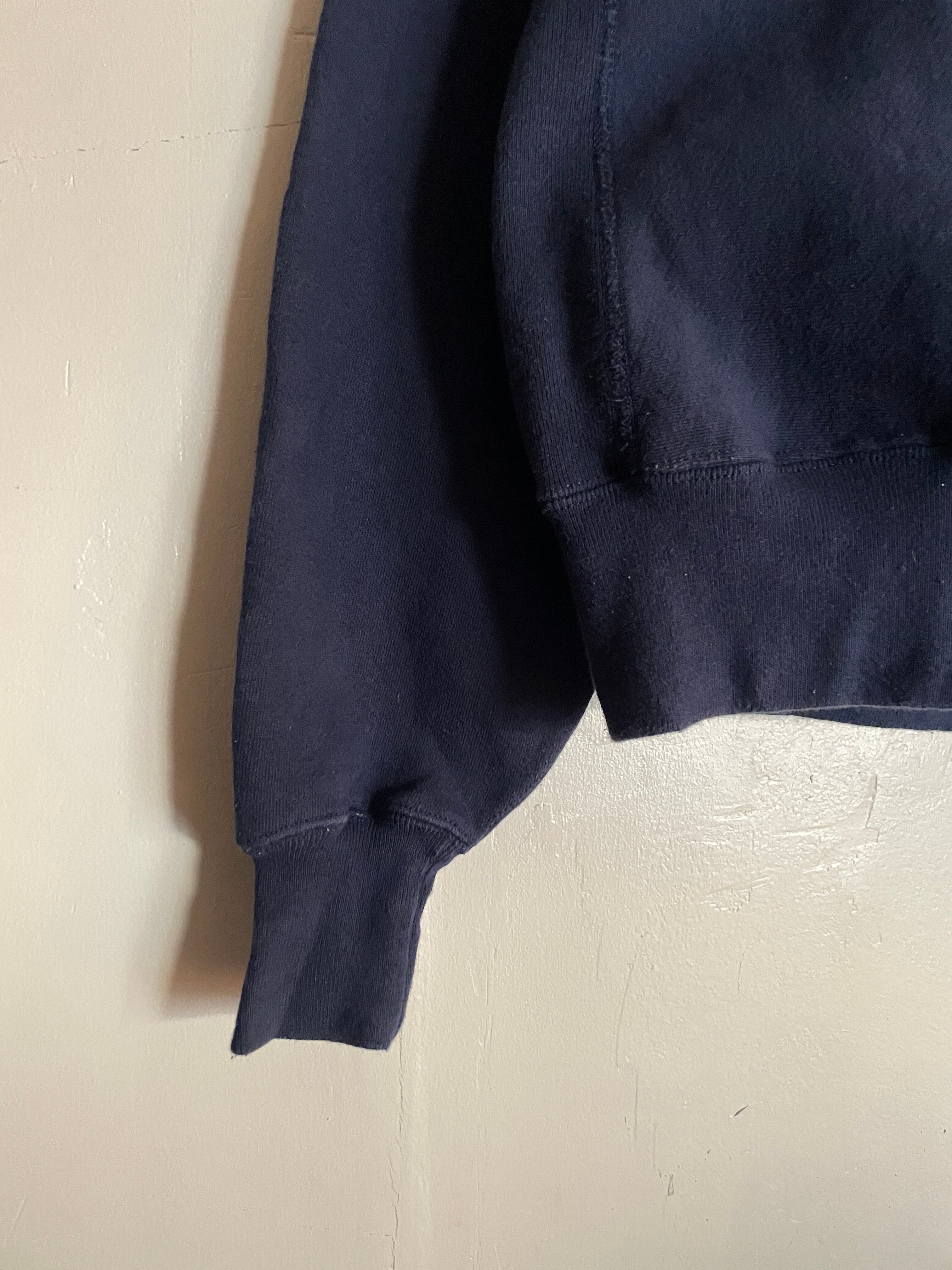 かつて存在した大手投資銀行グループとして有名な”リーマン・ブラザーズ”の刺繍が施されたスウェット。リーマンショックでご存知の方も多いのではないでしょうか。ネイビーボディに光沢のあるグリーンデザイン。フロントはワンポイント刺繍。バックにはキラッとしたプリント。肉厚な素材感で脇下はリバース仕様。タグはリーでUSA製。シンプルな攻めすぎて無いデザインでかなりレアな使いやすい1着かと思います。